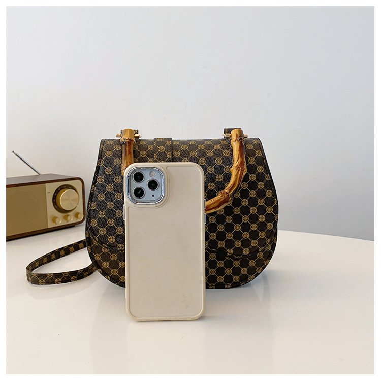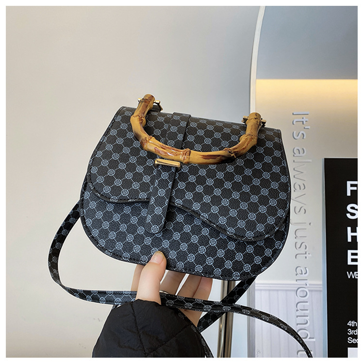 우아한 간단한 패션 한국 레트로 2024 새로운 인쇄 디자인 나무 휴대용 크로스 바디 안장 언더암 가방