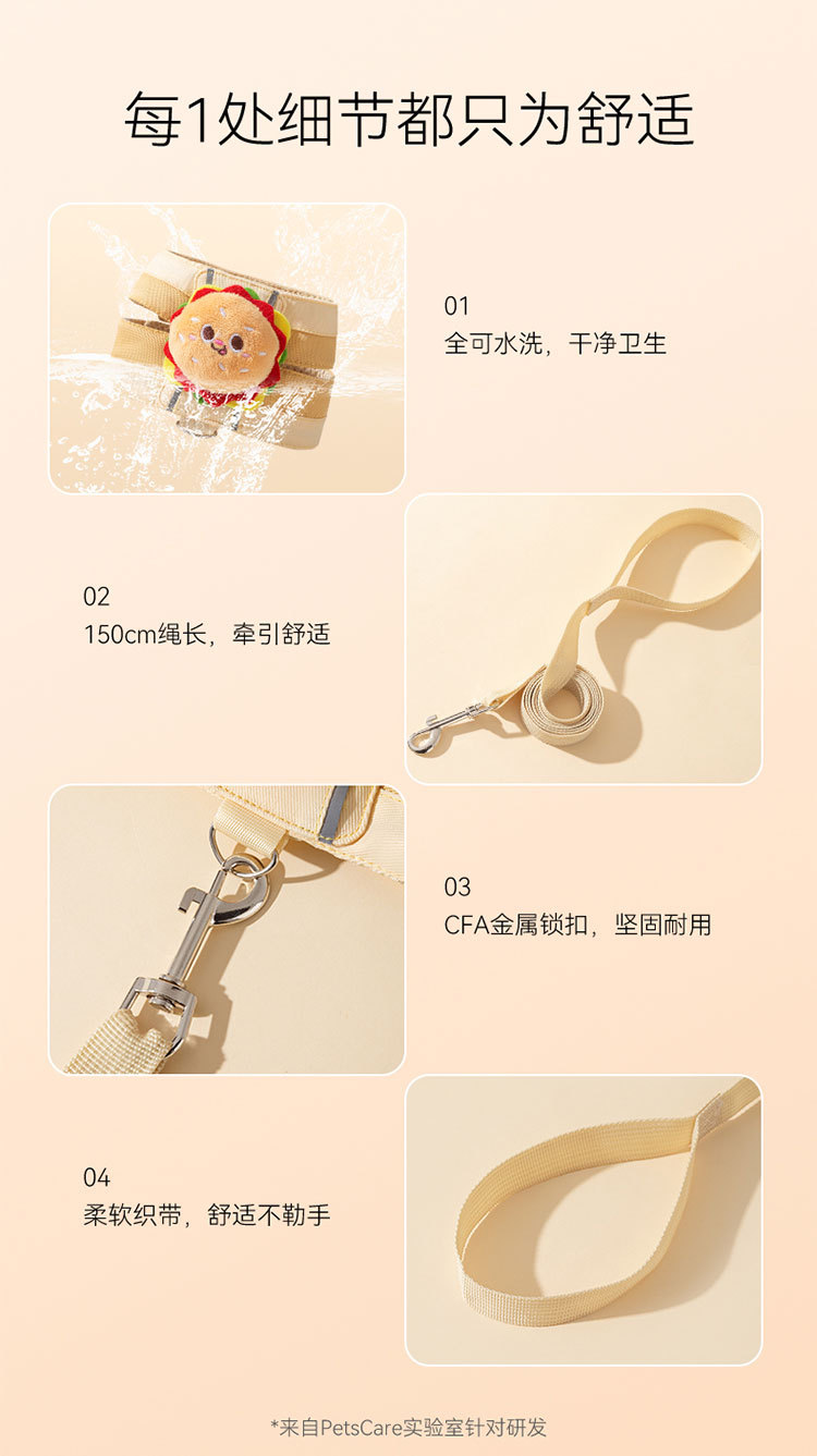 견인 밧줄 햄버거 프라이 인형 가슴 스트랩 개 고양이 애완 동물이 걸어 고양이 개 걷는 밧줄 안티 브레이킹 용품