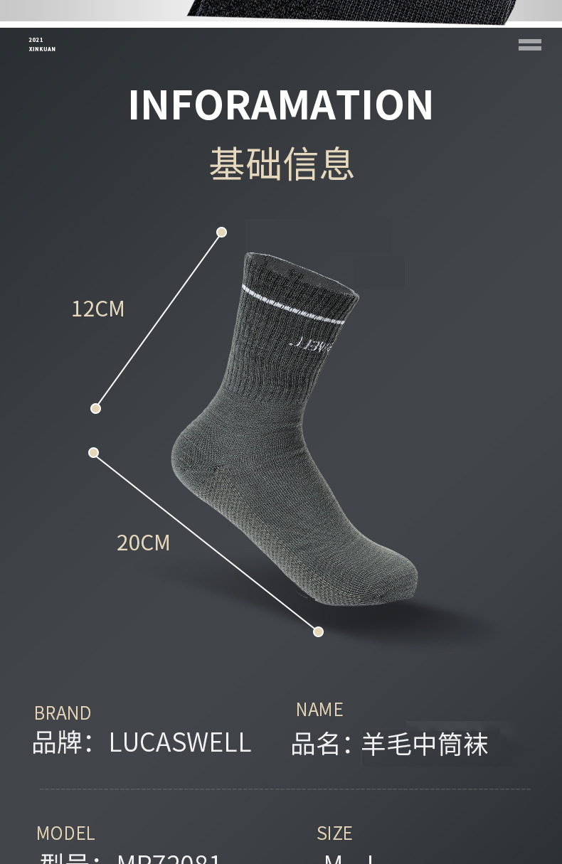 LUCASWELL 메리노 울 종아리 중간 양말 수분 흡수 야외 메리노 하이킹 양말 속건성 및 내마모성스토어 가기