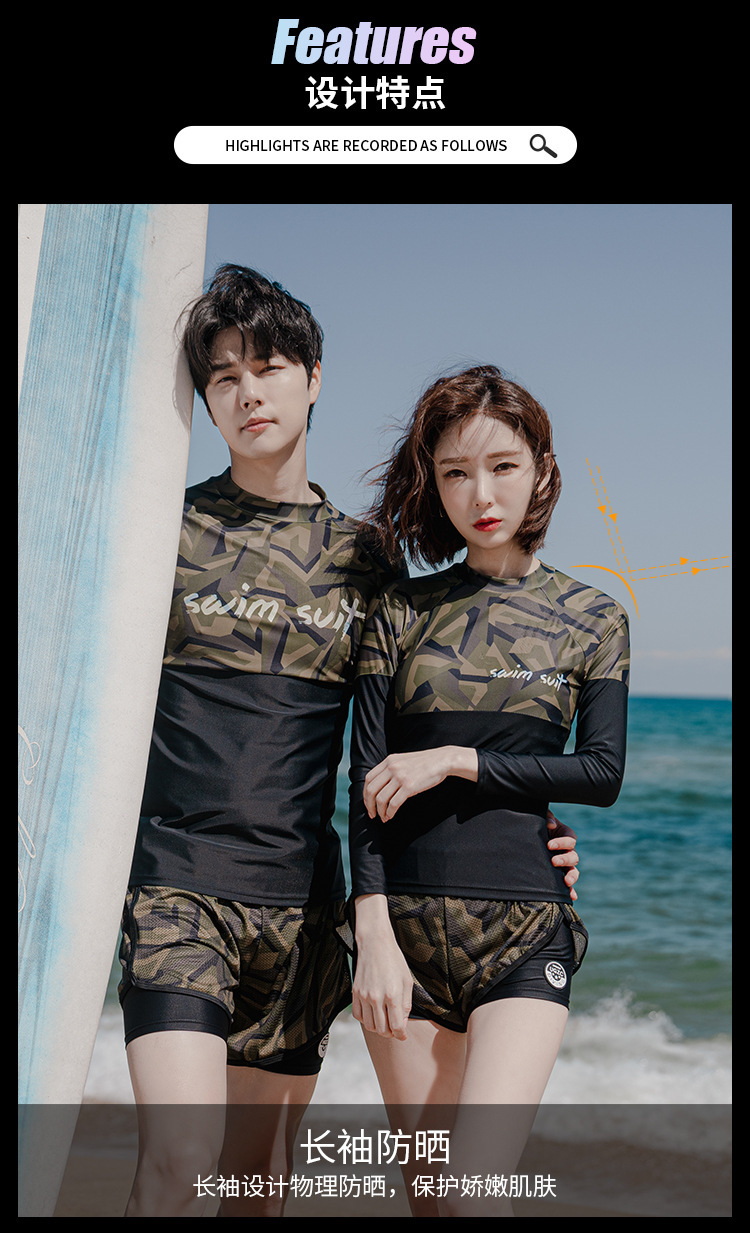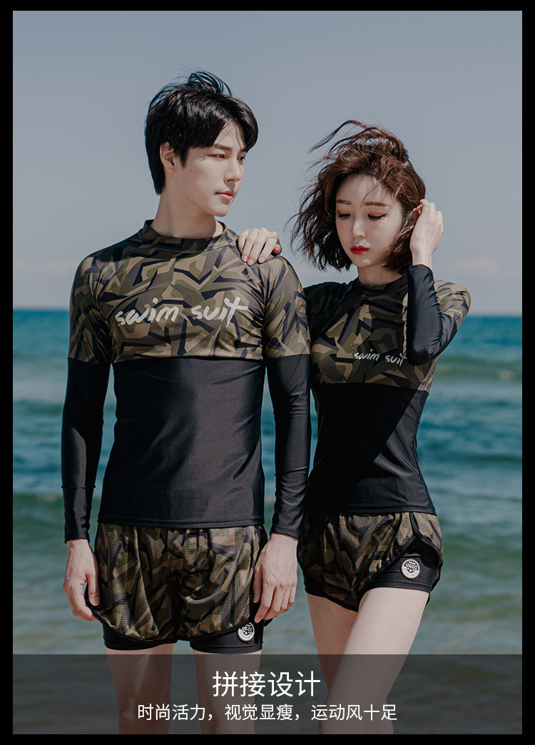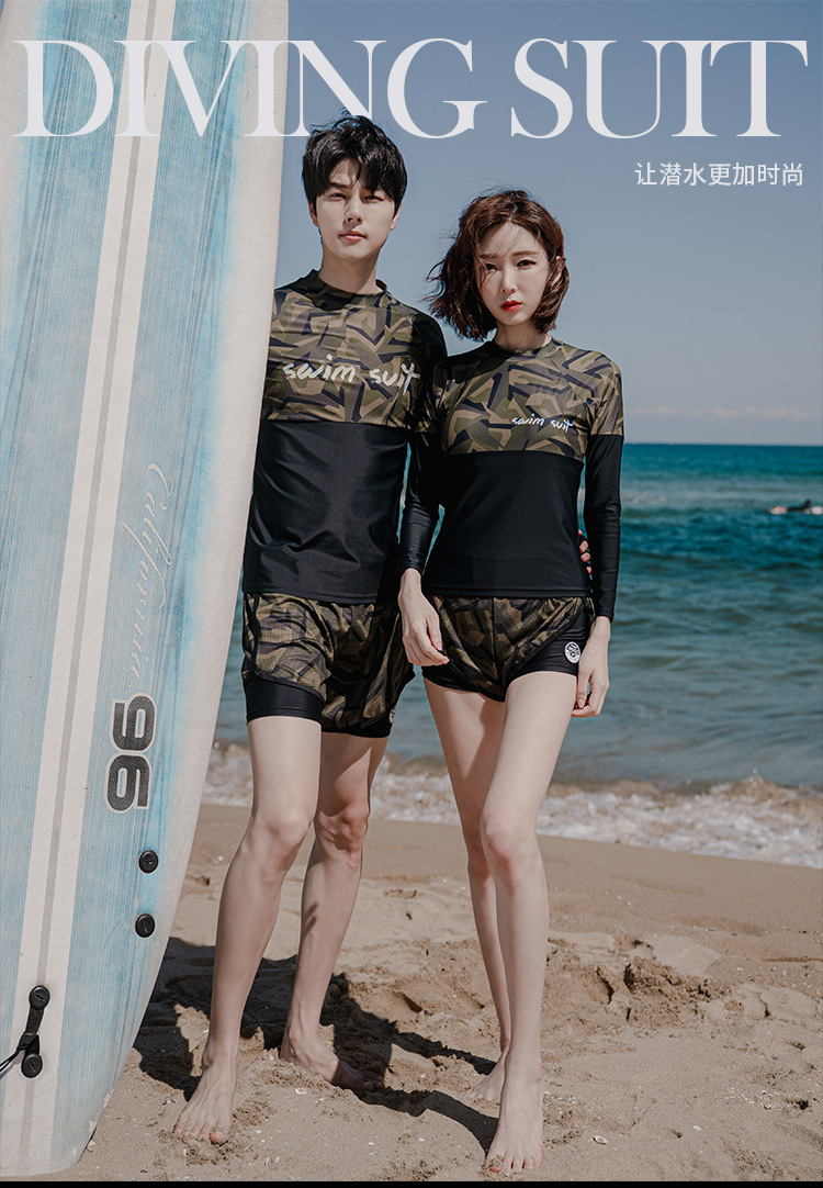 커플 분할 다이빙 세트 2024 한국식 긴 소매 보수 수영복 스포츠 서핑 크로스 국경 도매 수영복스토어 가기