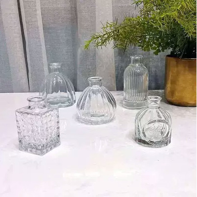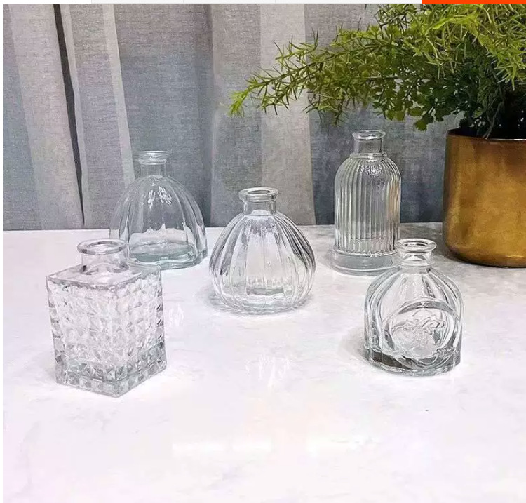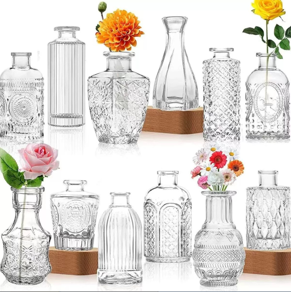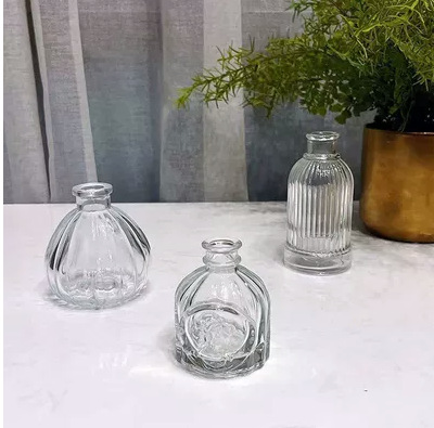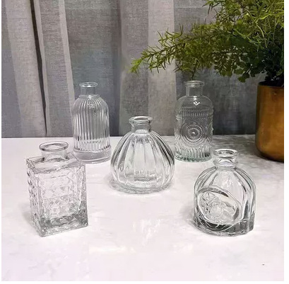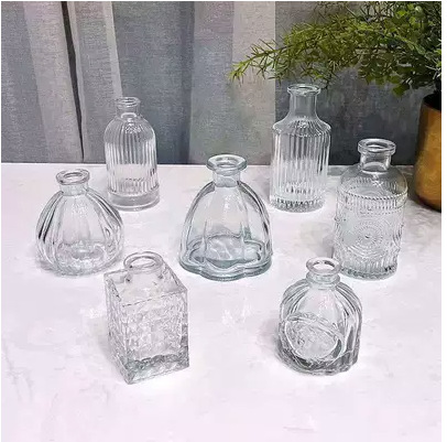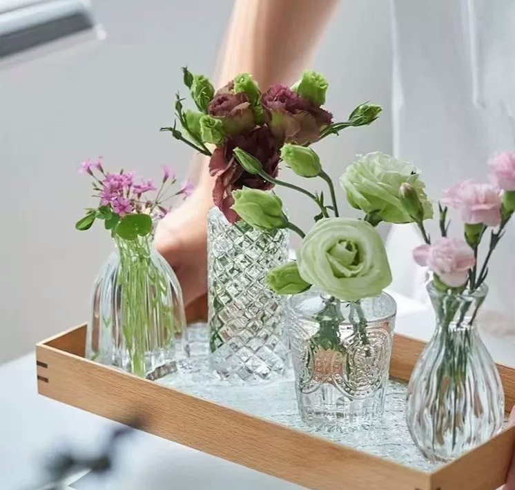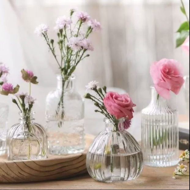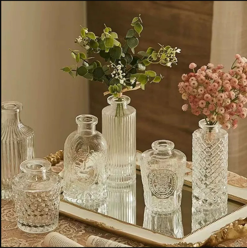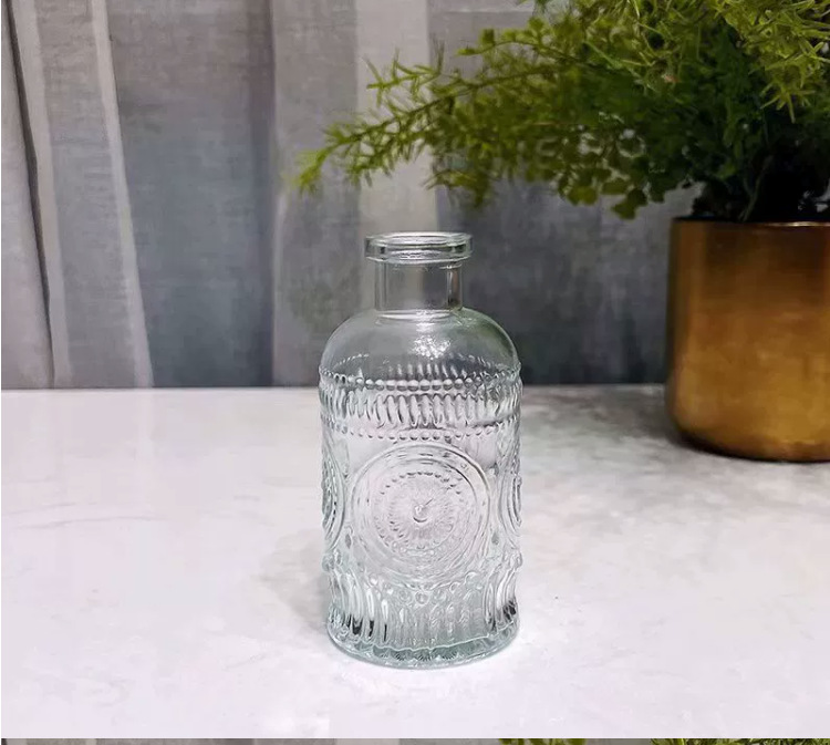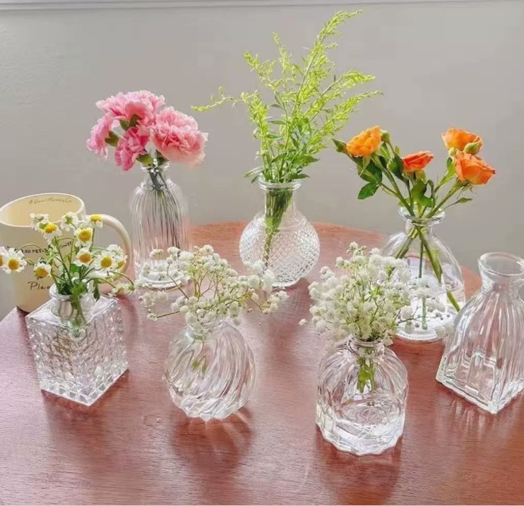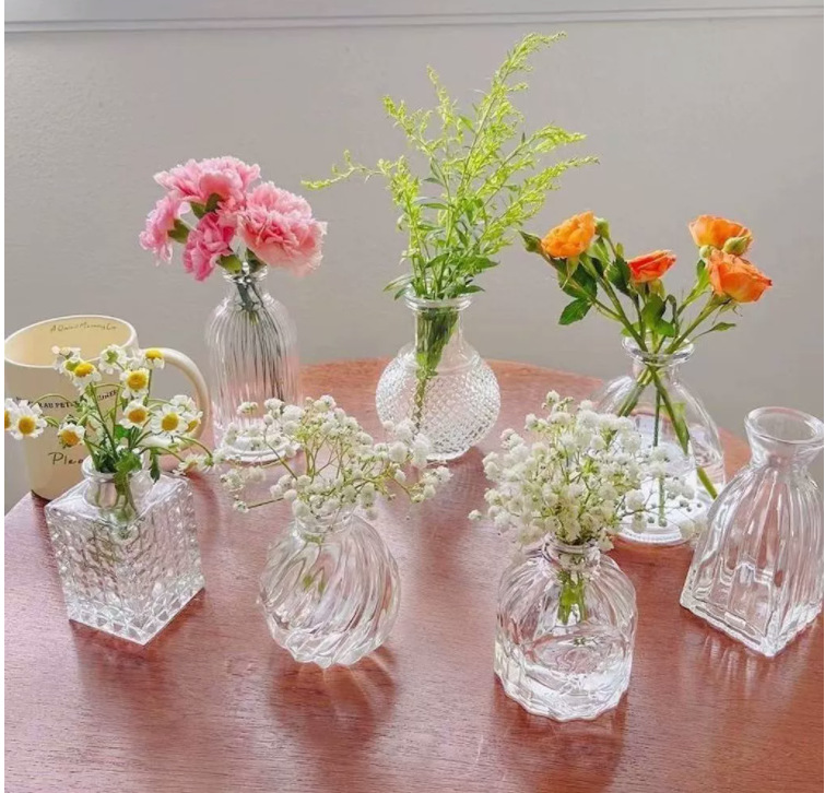 프랑스 복고풍 양각 유리 미니 꽃병 스타일 투명 수경 꽃꽂이 꽃병 데스크탑 장식 장식품스토어 가기