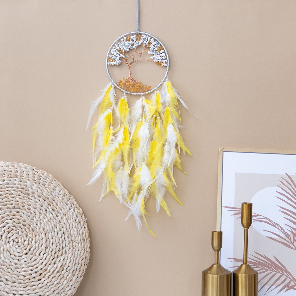 자연 자갈 생활 나무의 다양한 국경 폭발 꿈 포수 장식품 컬러 깃털 바람 차임 벽 장식 펜던트