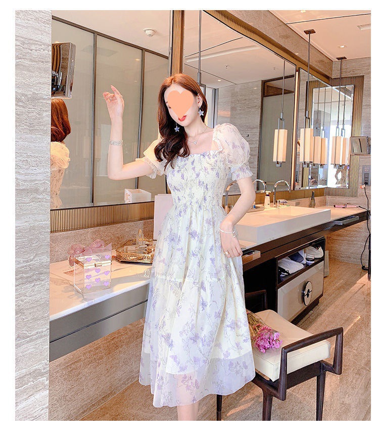 여름 차 브레이크 프랑스 잉크 그림 허리 슬리밍 기질 숙녀 화이트 쉬폰 원피스 여성 의류 쇼핑몰 같은 스타일스토어 가기