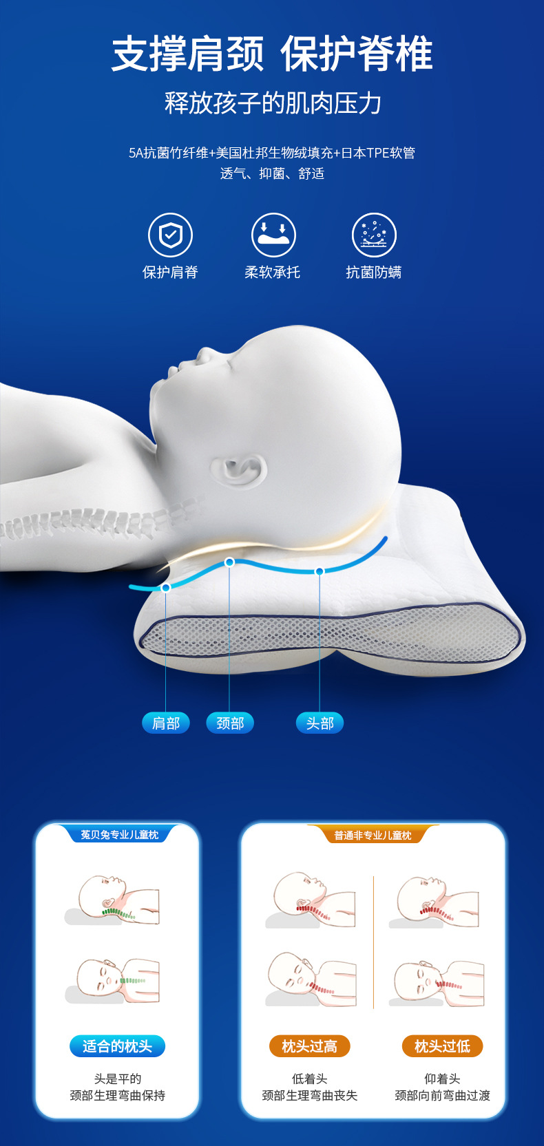 어린이 베개 1-8 세 척추 보호 자궁 경부 베개 코어 파티션 디자인 사계절 보편적 인 아기 초등학생 통기성 베개