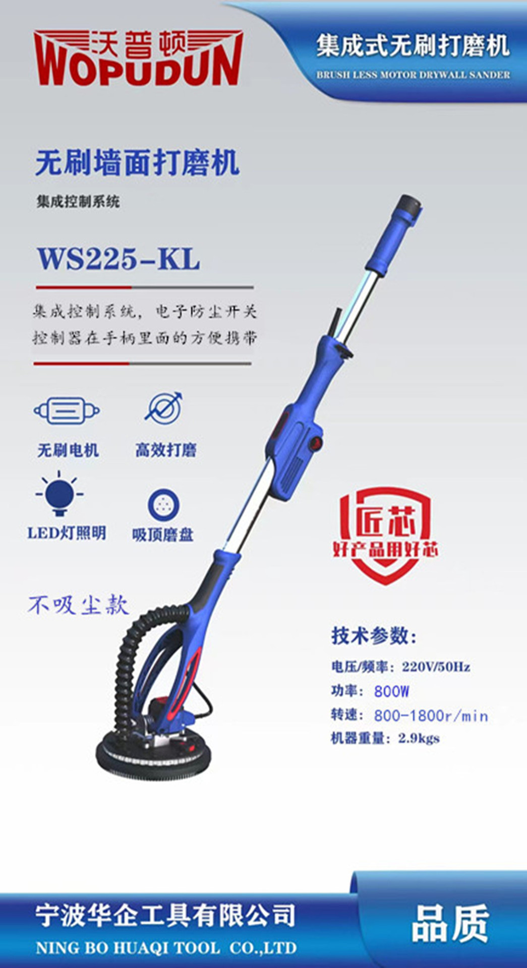 • Wupton 통합 브러시리스 샌더는 진공 청소기없이 총 길이가 2.2 미터 인 표준으로 제공됩니다.