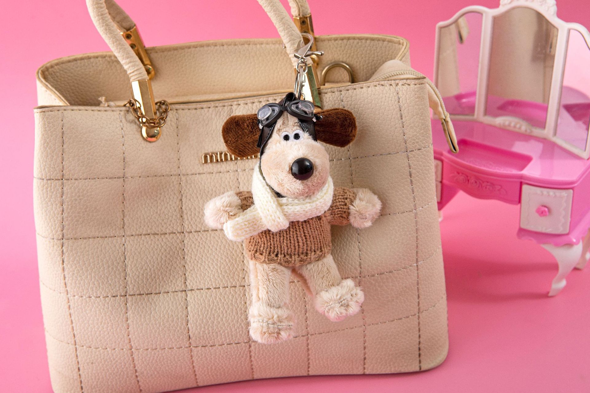 • 핑크 샤넬 스타일 작은 펜던트 핸드독