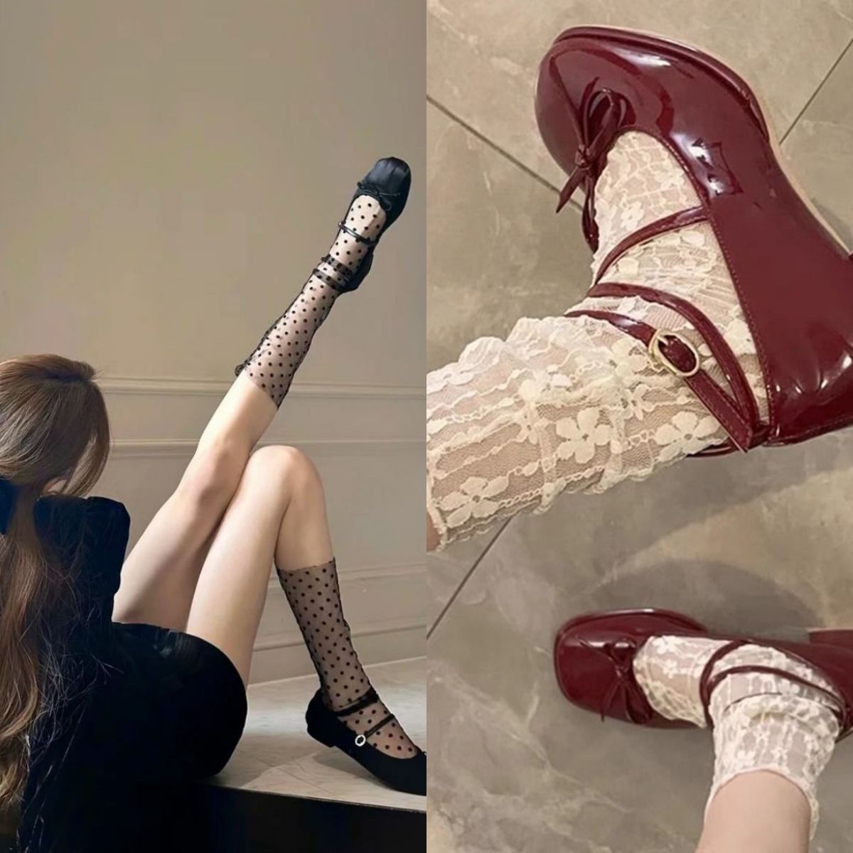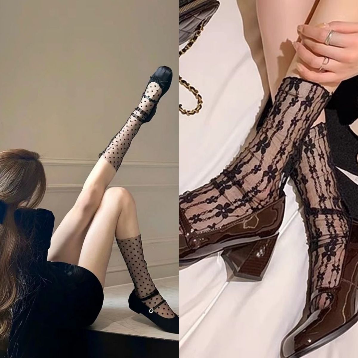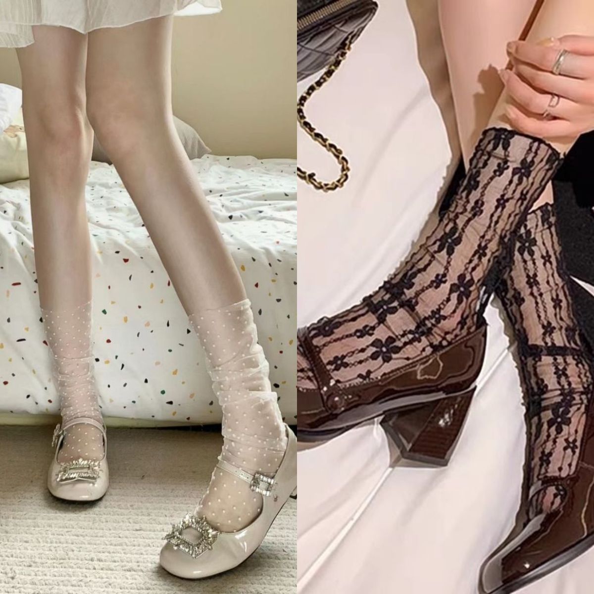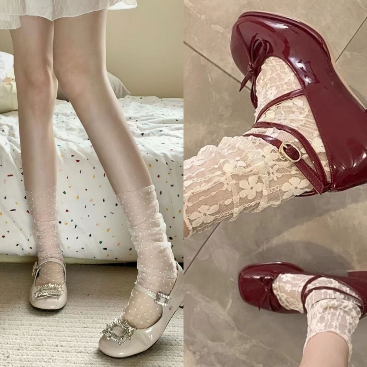 봄 여름 메쉬 양말 순수한 욕망 흰색 물방울 무늬 코스웨어 요정 초박형 투명 거즈 레이스 종아리 양말스토어 가기