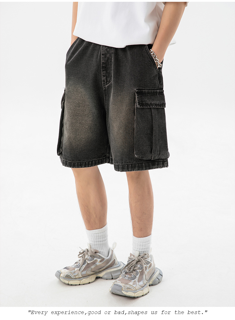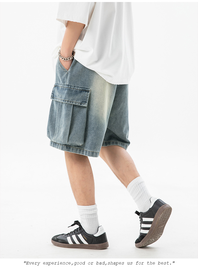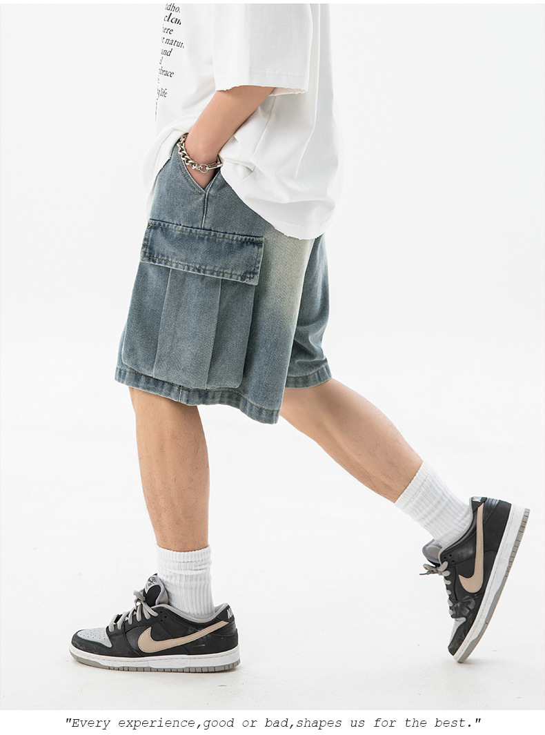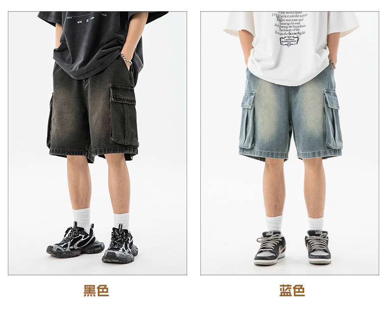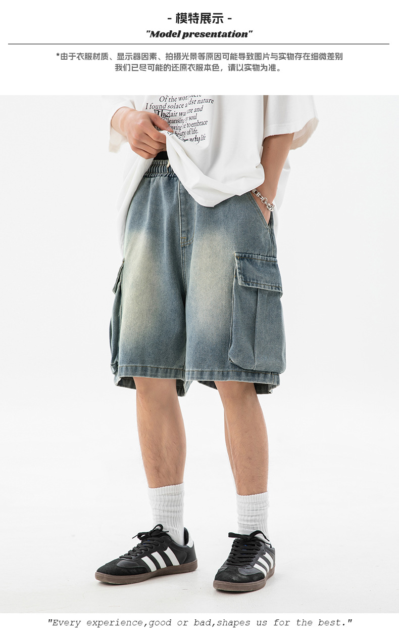 남성 여름 새로운 느슨한 측면 입체 대형 포켓 캐주얼 바지 데님 반바지스토어 가기