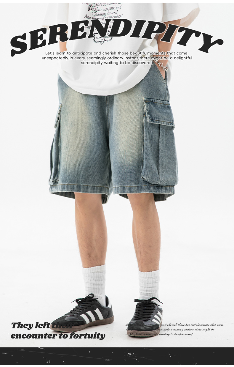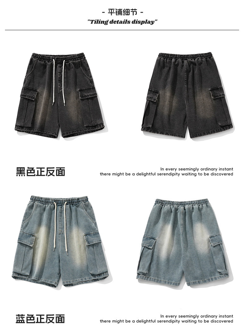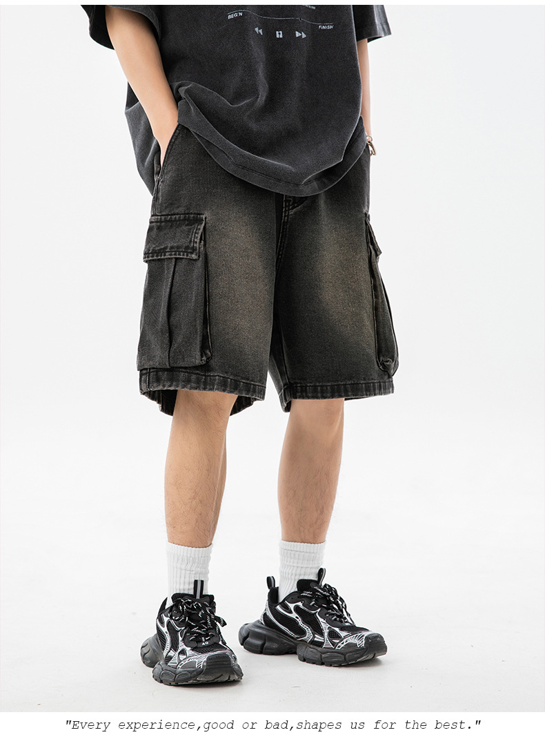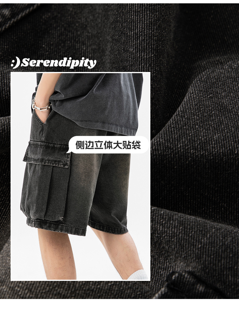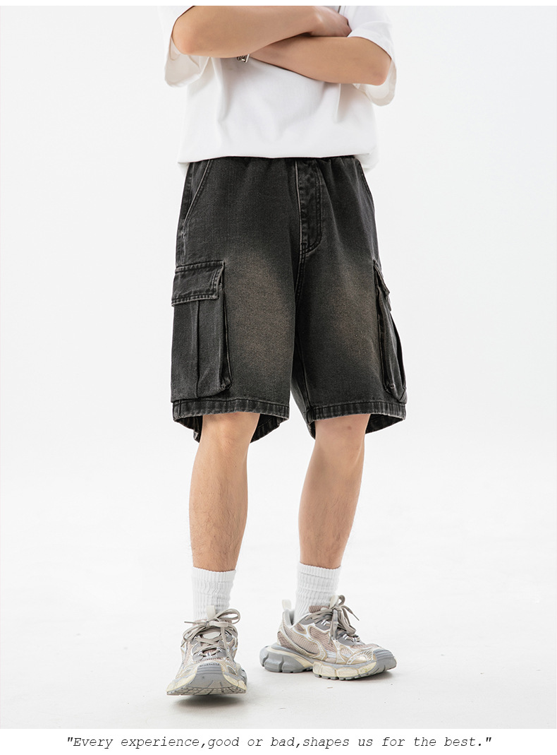남성 여름 새로운 느슨한 측면 입체 대형 포켓 캐주얼 바지 데님 반바지스토어 가기