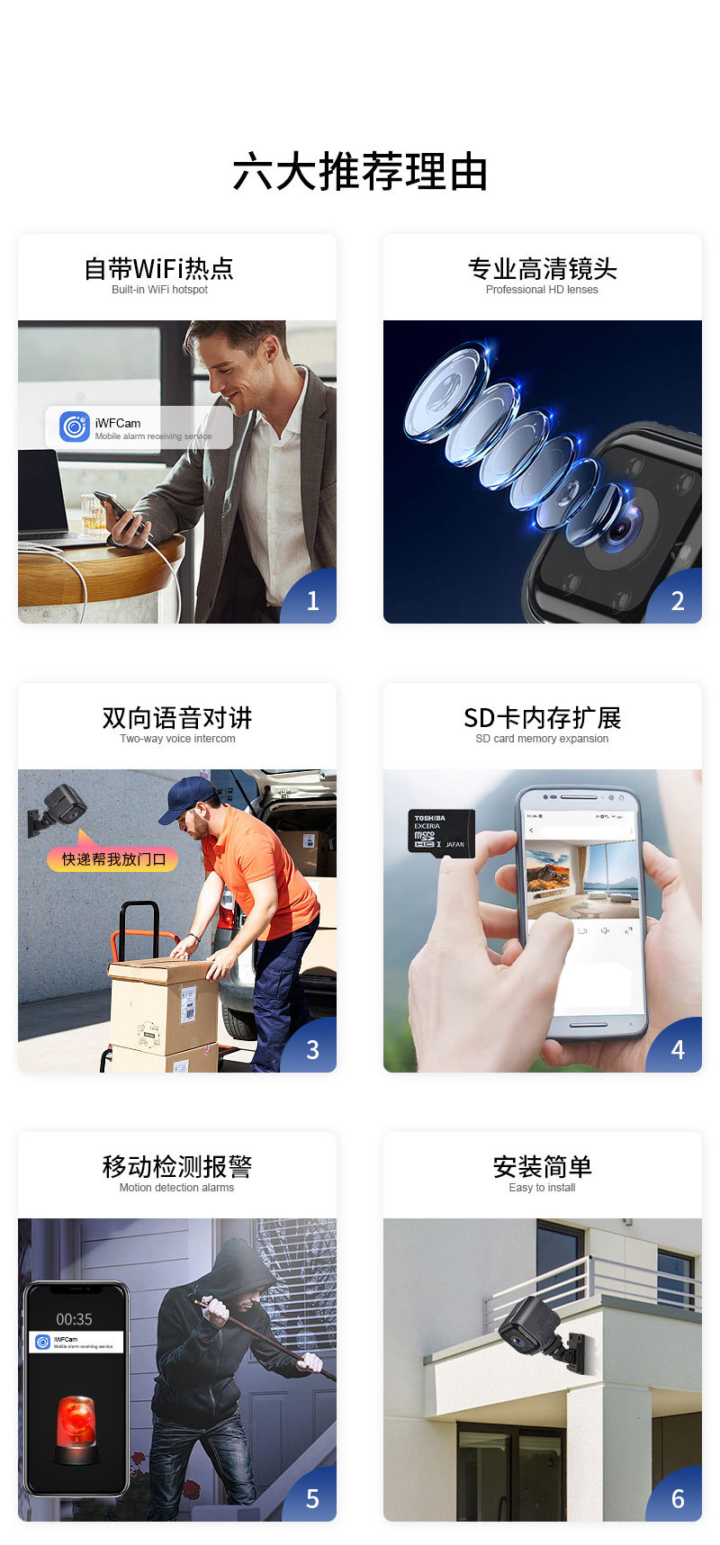 AS03 저전력 스마트 와이파이 카메라 야간 투시 야외 스포츠 가정용 모니터링 양방향 카메라 인터콤 1080
