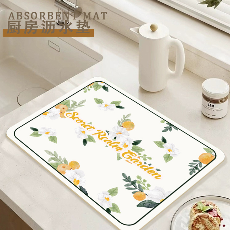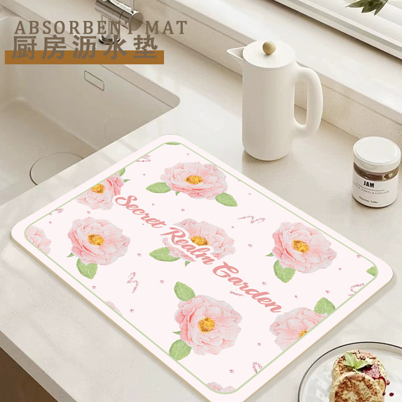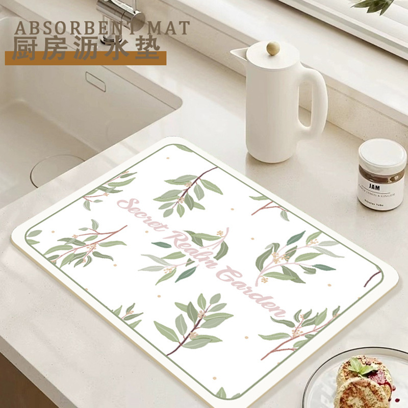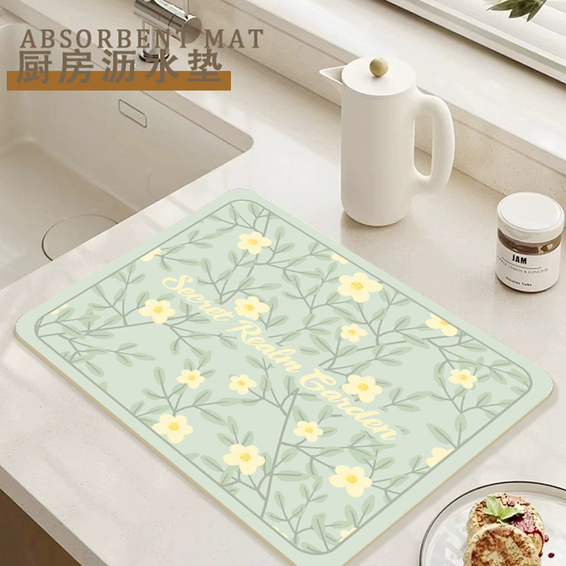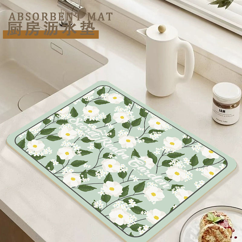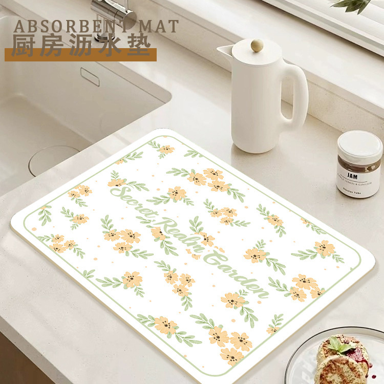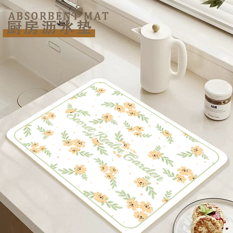 가정용 꽃 욕실 조리대 흡수 매트 주방 그릇 접시 배수 매트 식탁 간단한 열 절연 티 컵 매트스토어 가기