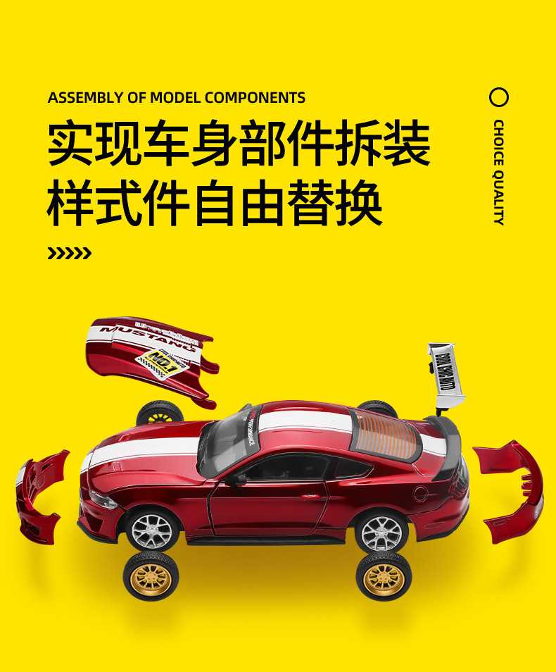 1:42 포드 머스탱 GT 수정 합금 자동차 모델 조립 장난감 분리 가능한 레이싱 버전 국경 핫 세일스토어 가기