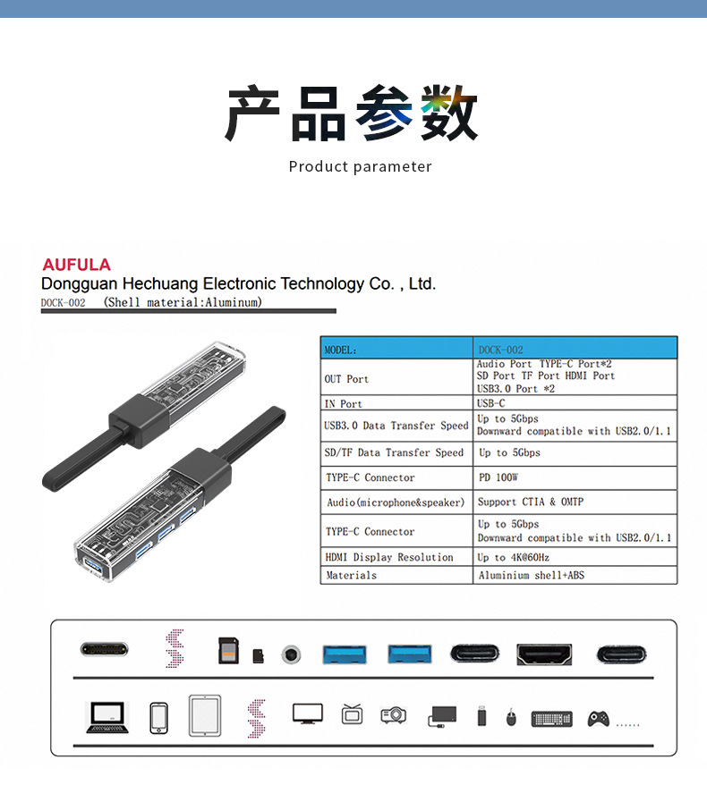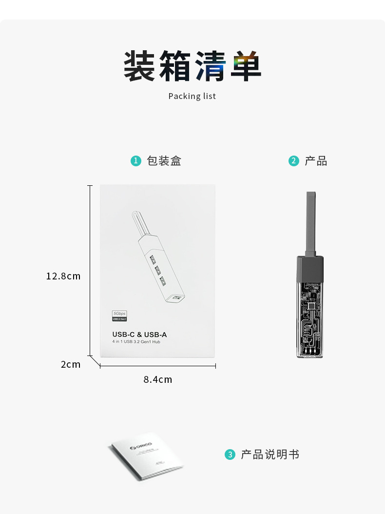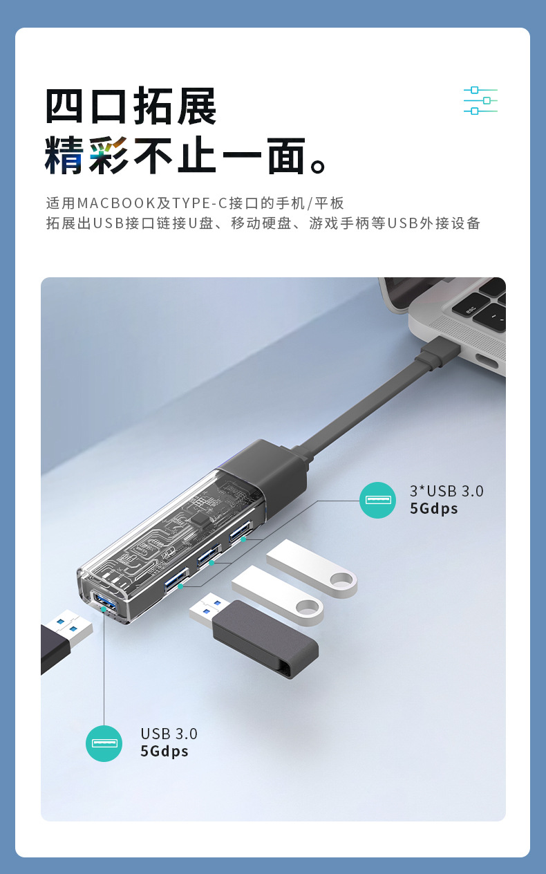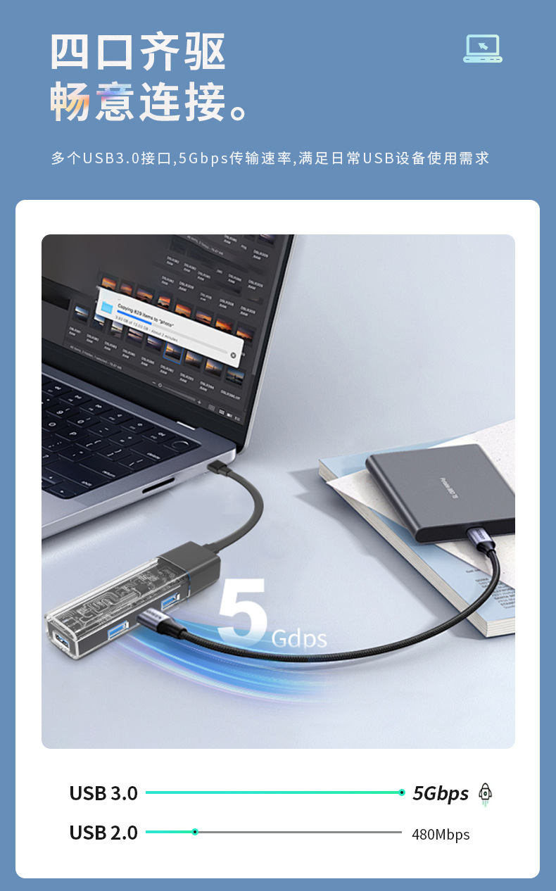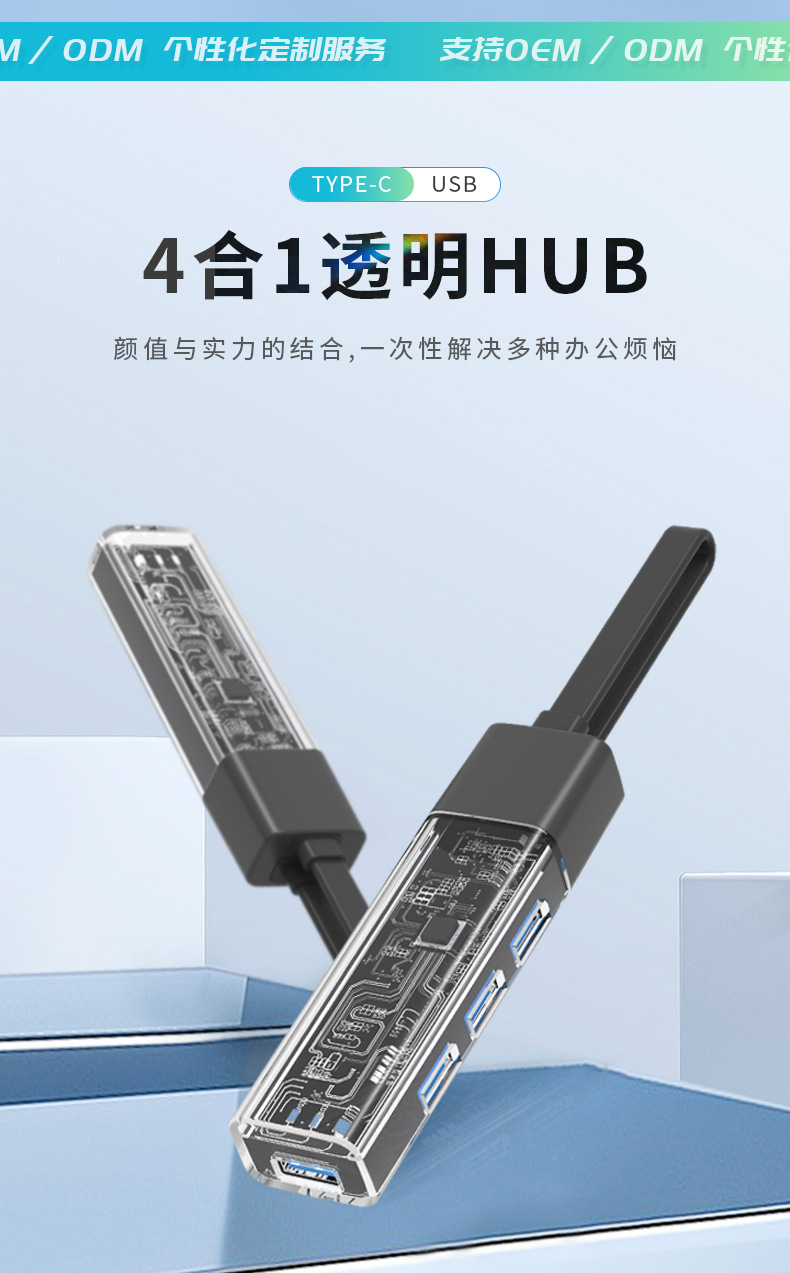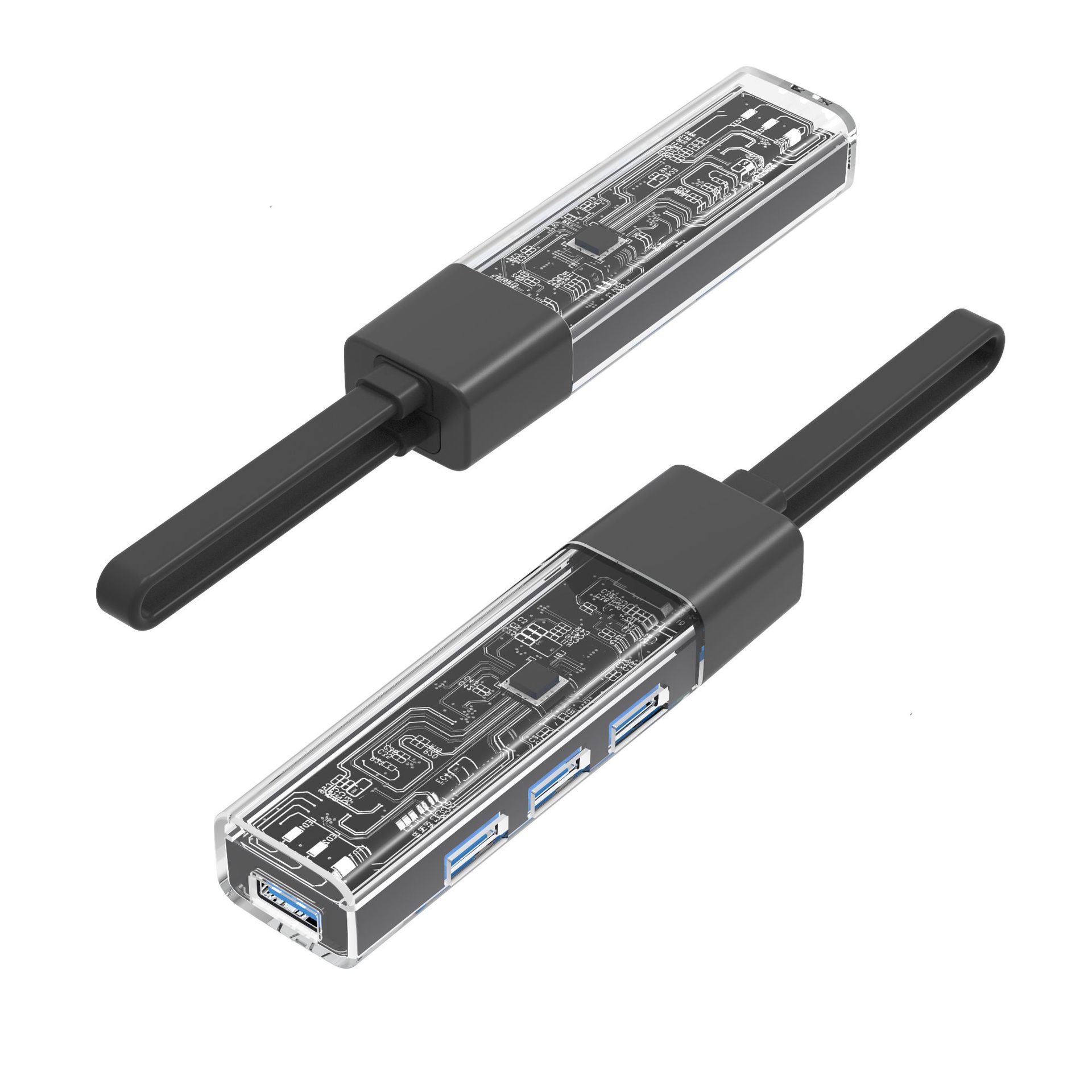 국경 투명 확장 도크 Type-C USB 간 변환 다기능 배포 허브 4 포트 USB3.0 익스텐더