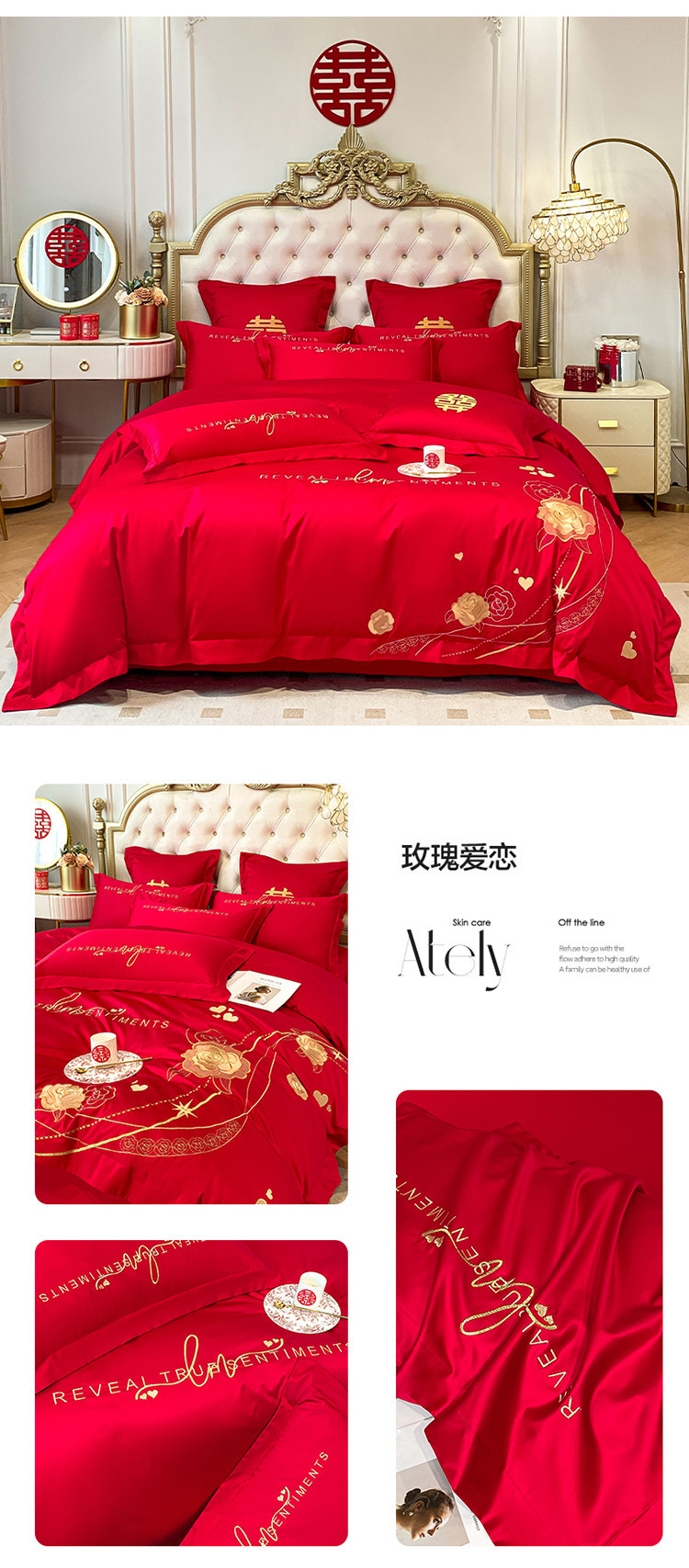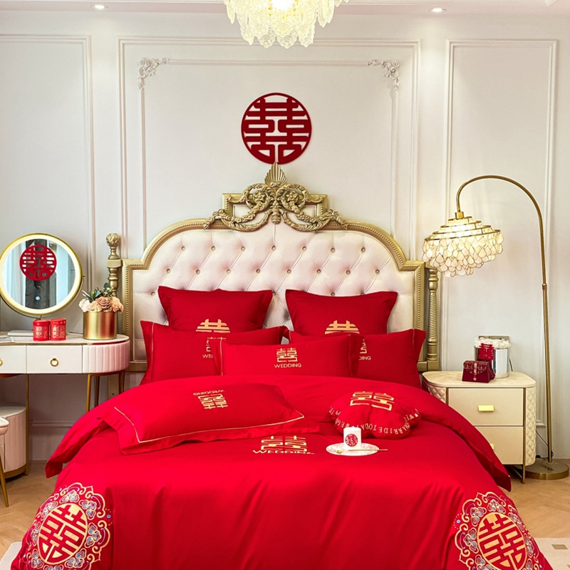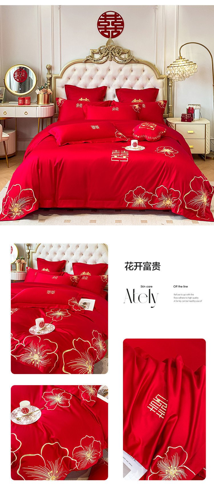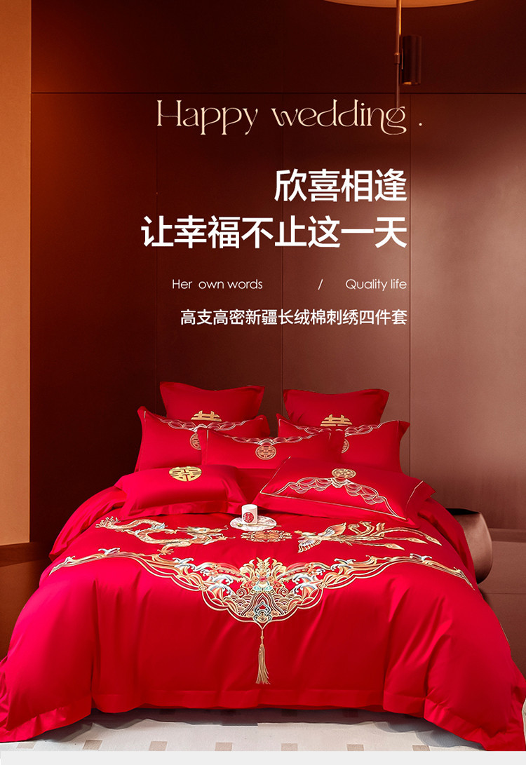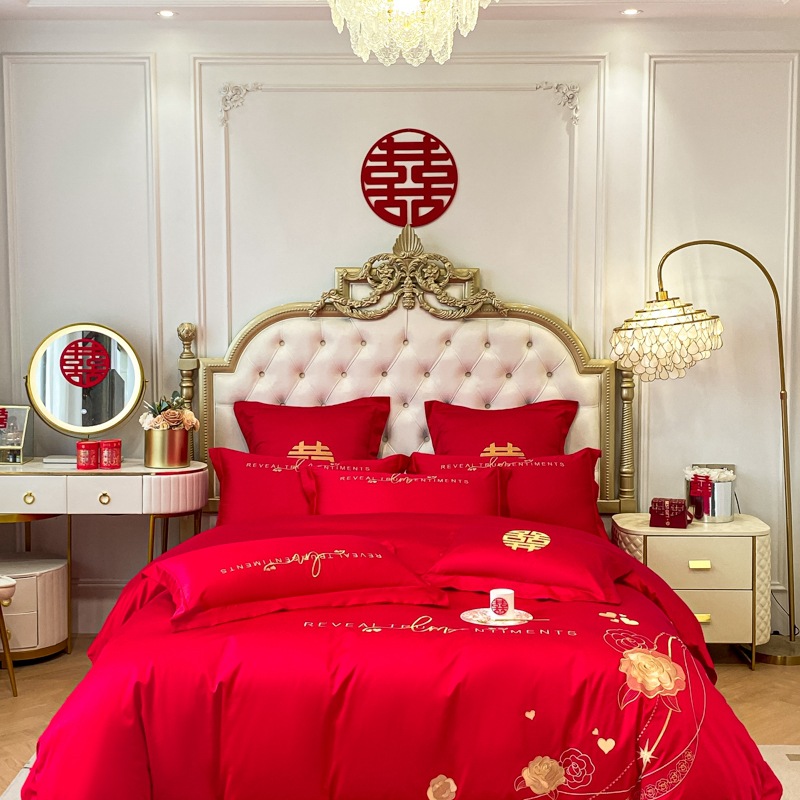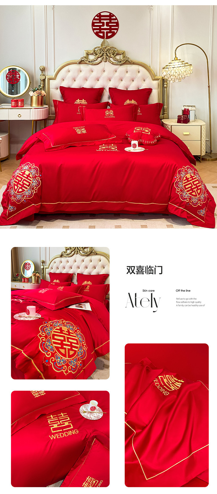 웨딩 네 조각 세트 모든면 해피 퀼트 레드 하이 엔드 간단한 자수 새로운 웨딩 룸 웨딩 선물 침대 모자 싱글 침구스토어 가기