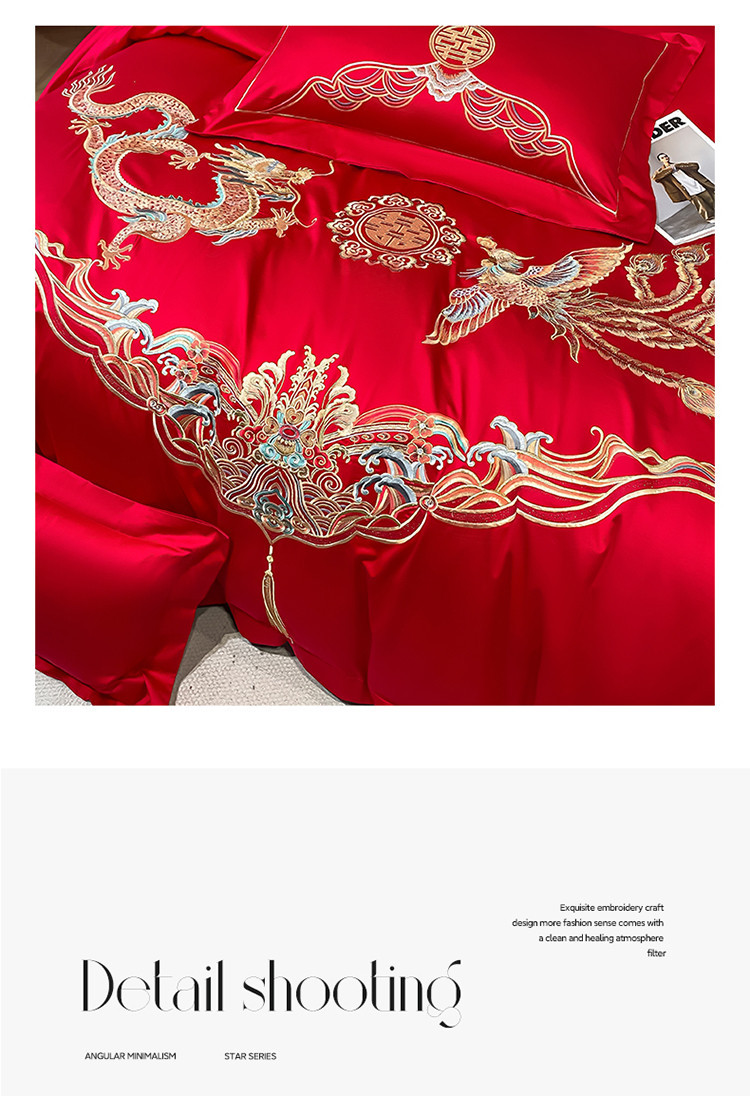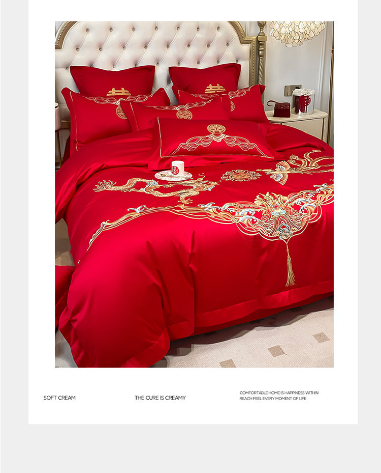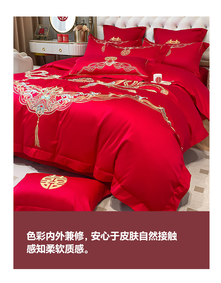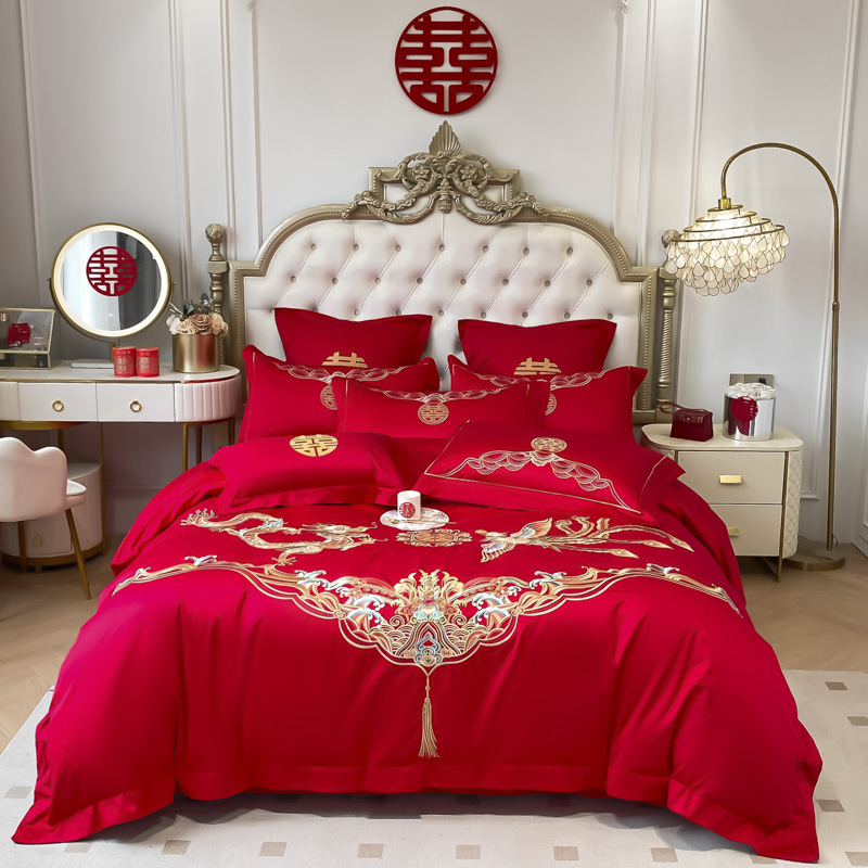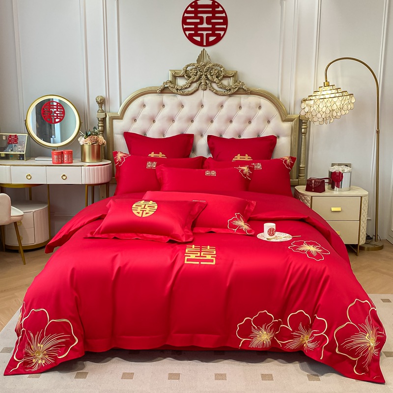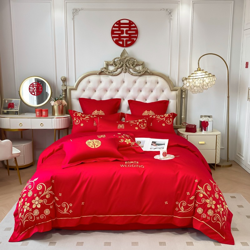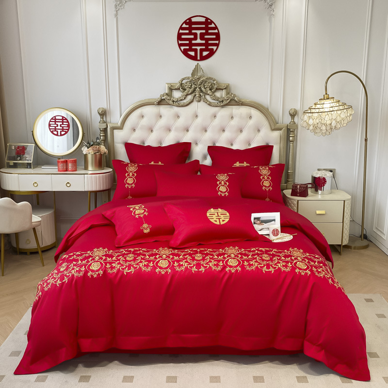 웨딩 네 조각 세트 모든면 해피 퀼트 레드 하이 엔드 간단한 자수 새로운 웨딩 룸 웨딩 선물 침대 모자 싱글 침구스토어 가기