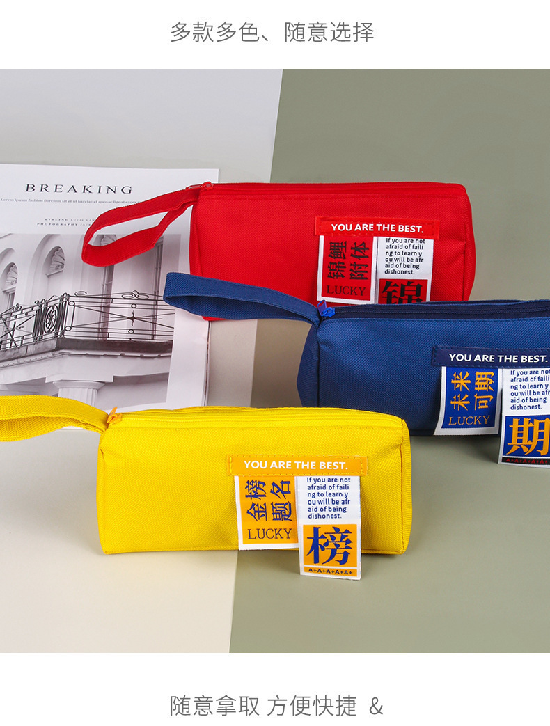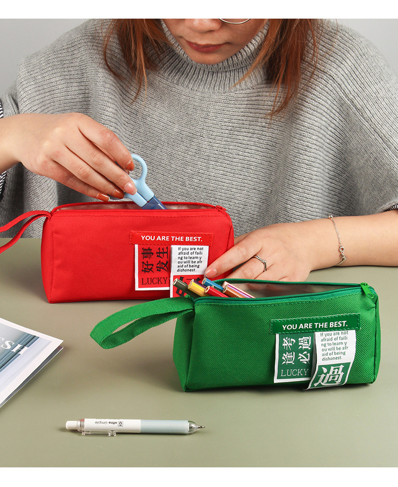 소년 소녀를위한 간단한 영감을주는 대용량 문구 가방 대학 입학 시험 견적을위한 일반 연필 가방 창조적 인 휴대용 연필 가방스토어 가기