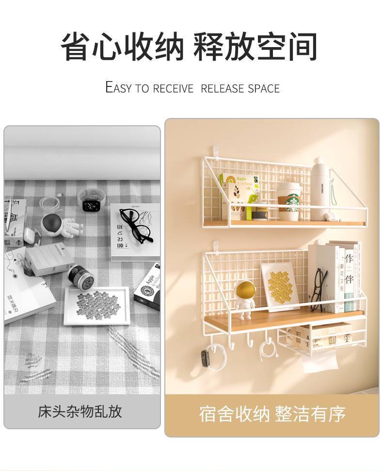 벽걸이 선반, 침대 옆 기숙사 유물 걸이 바구니, 침실 용품, 벽 칸막이, 벽 수납 선반스토어 가기