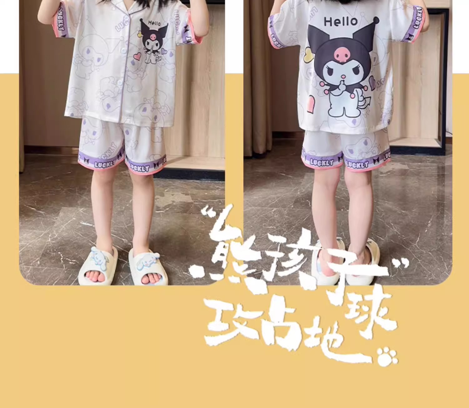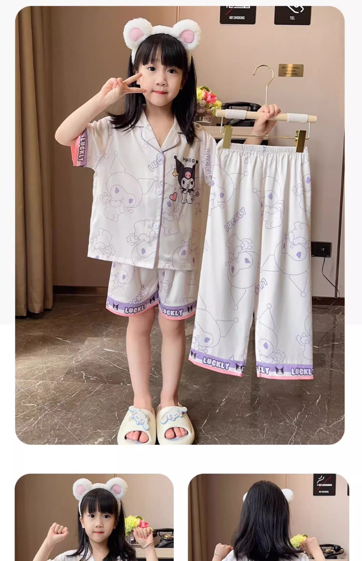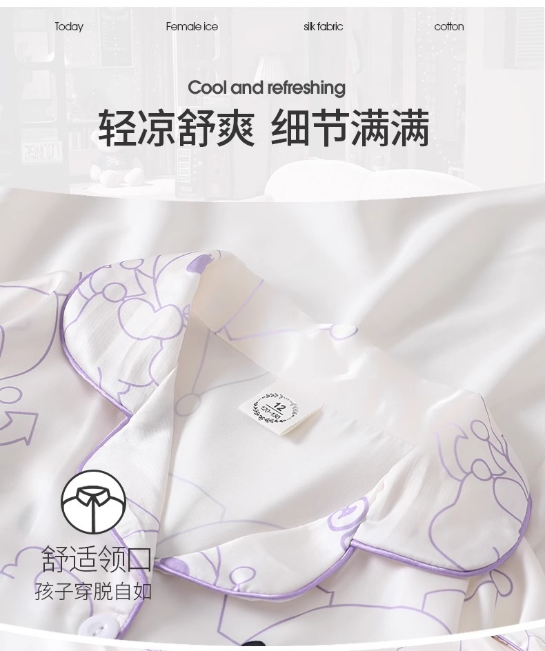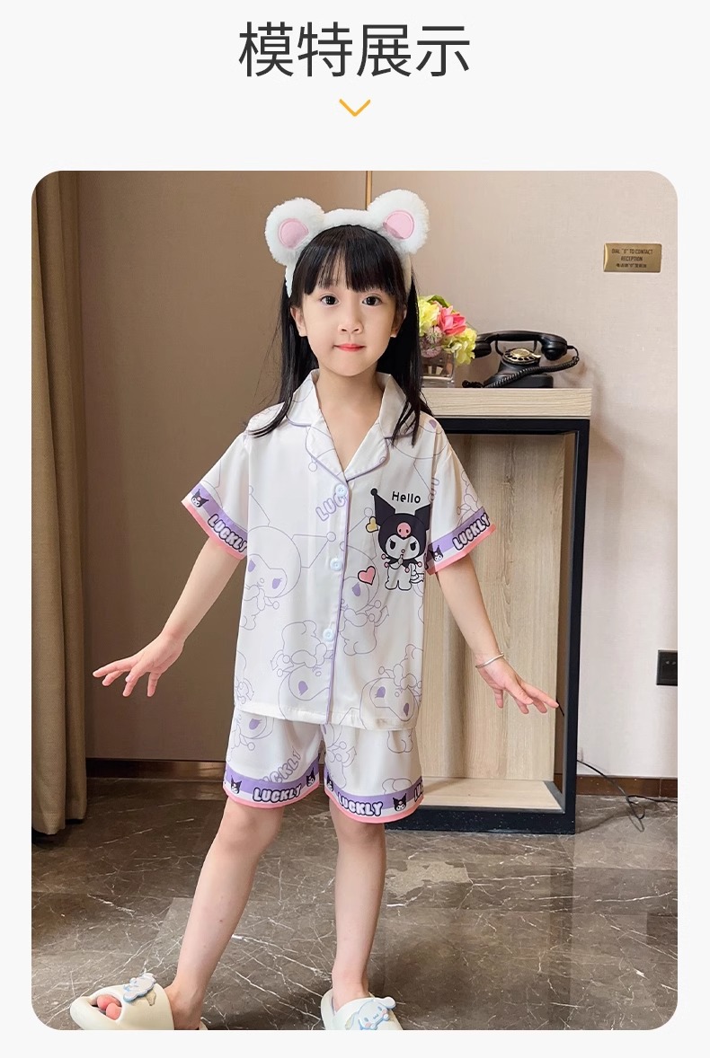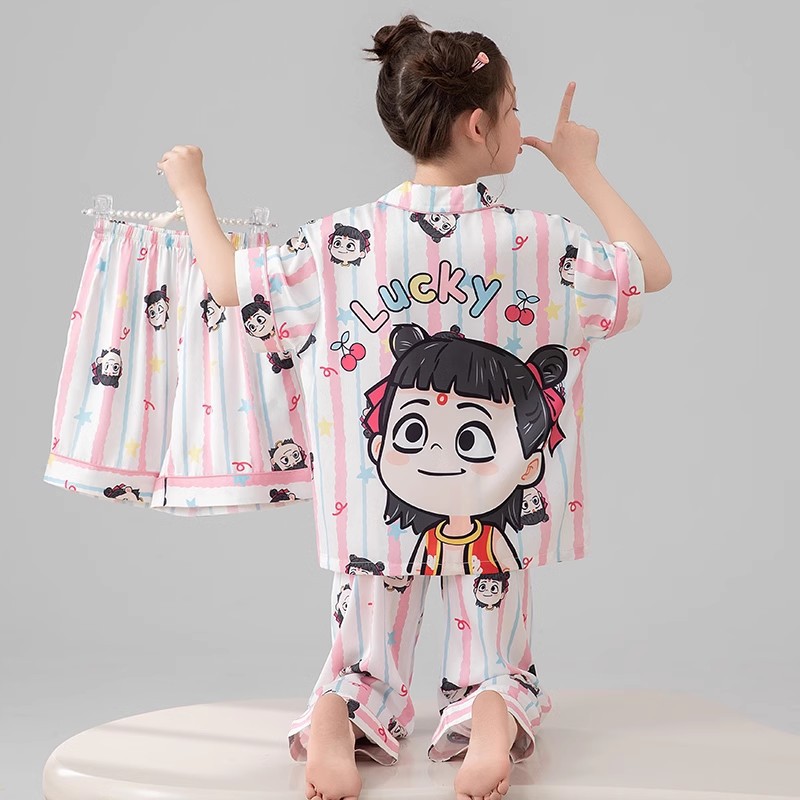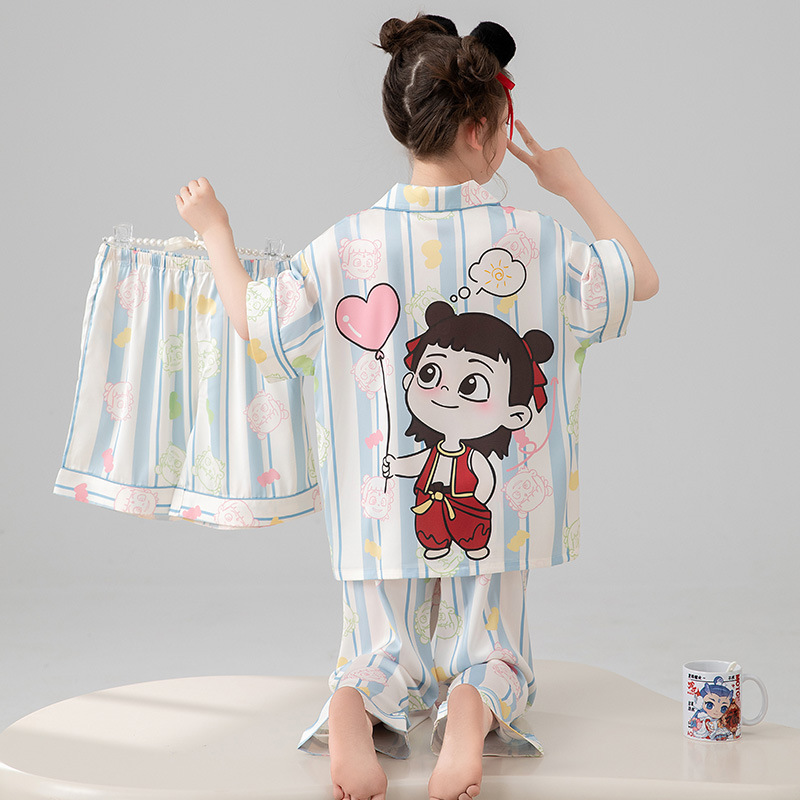 어린이 잠옷 아이스 실크 여름 얇은 3 피스 세트 걸스 반팔 바지 빅 키즈 걸스 홈 옷 2025 여름스토어 가기