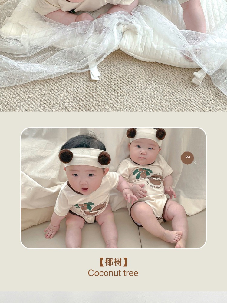 새로운 만화 코코넛 나무 신생아 카사 타입 면 아기 소년과 소녀 아기 랩 방귀 옷 헤어 옷 등반 옷스토어 가기