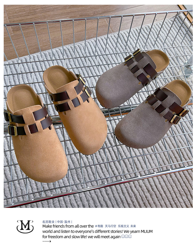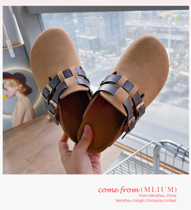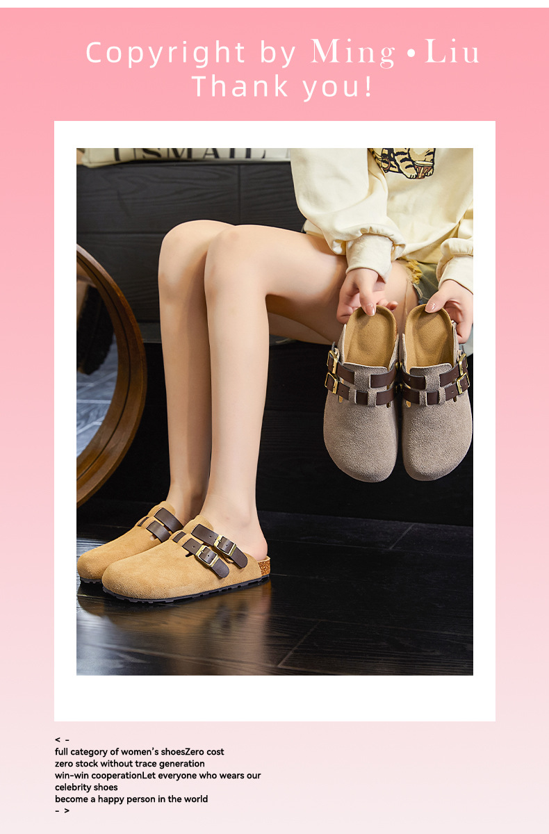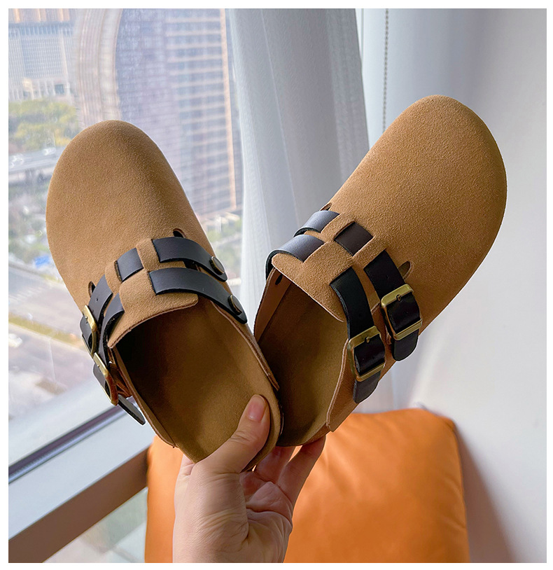 여성용 천연 가죽 슬리퍼 2025년 여름 신상 외출용 플랫 반슬리퍼 캐주얼 다용도 샌들 패션 여성화스토어 가기