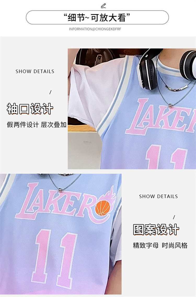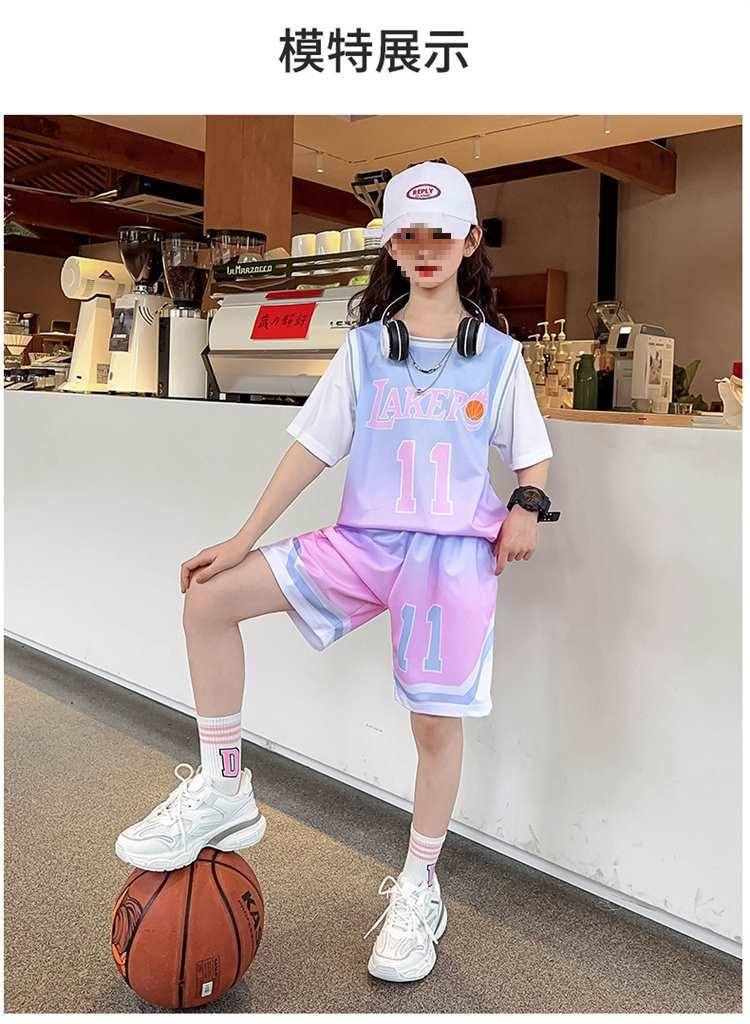 여자 농구 옷 빠른 건조 핑크 저지 여름 반팔 초등학교 학생 팀 옷 여자 스포츠 느슨한 11 번 볼 옷