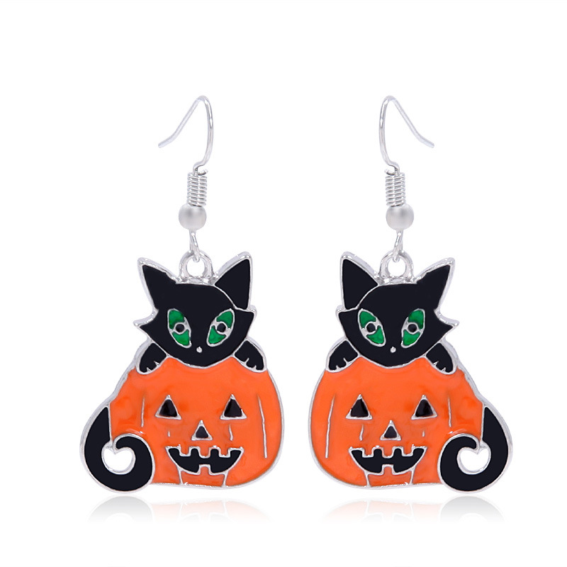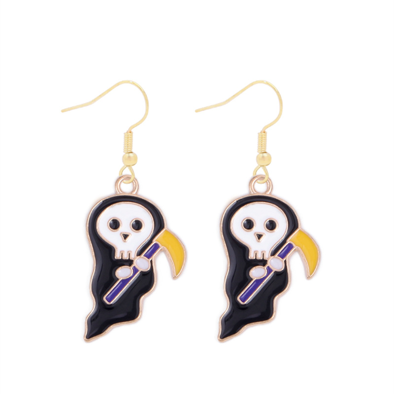 아마존 할로윈 시리즈 귀걸이 공포스러운 합금 거미 유령 호박 해골 귀걸이