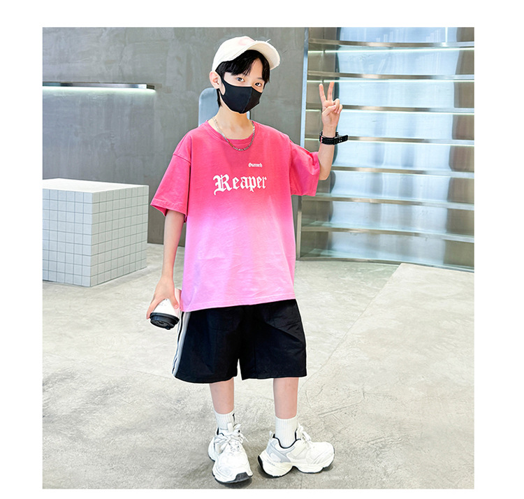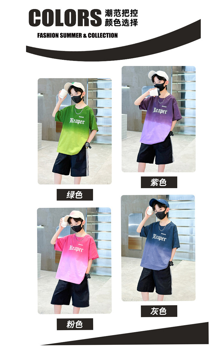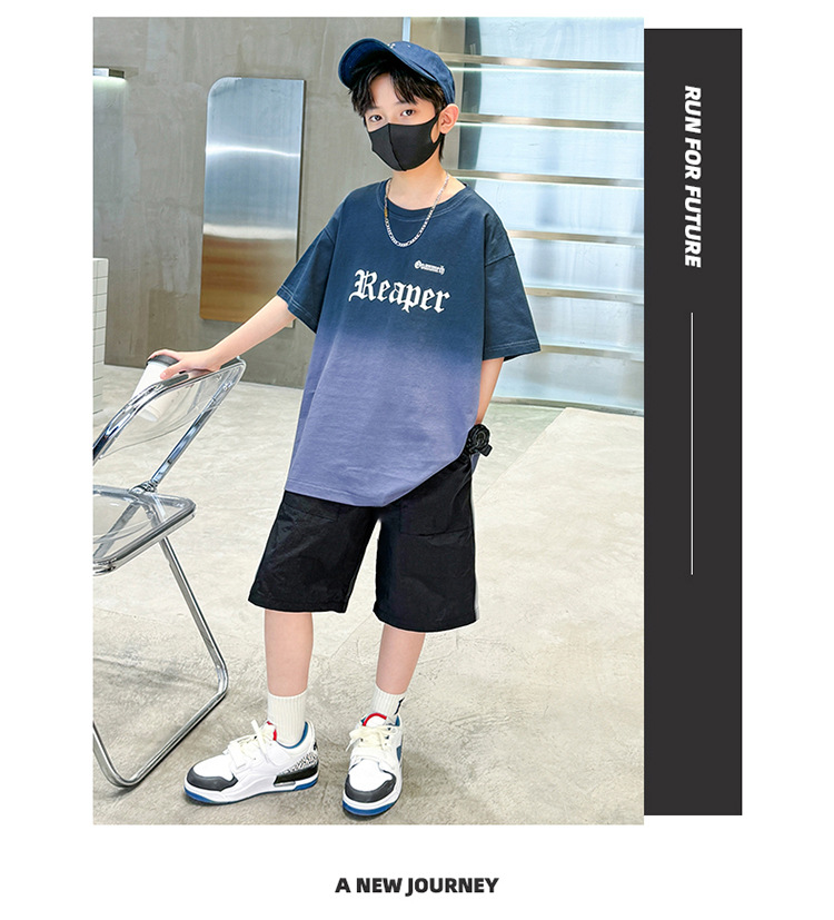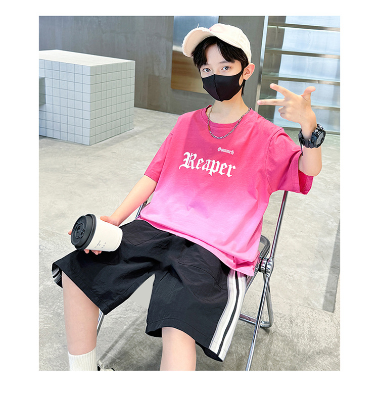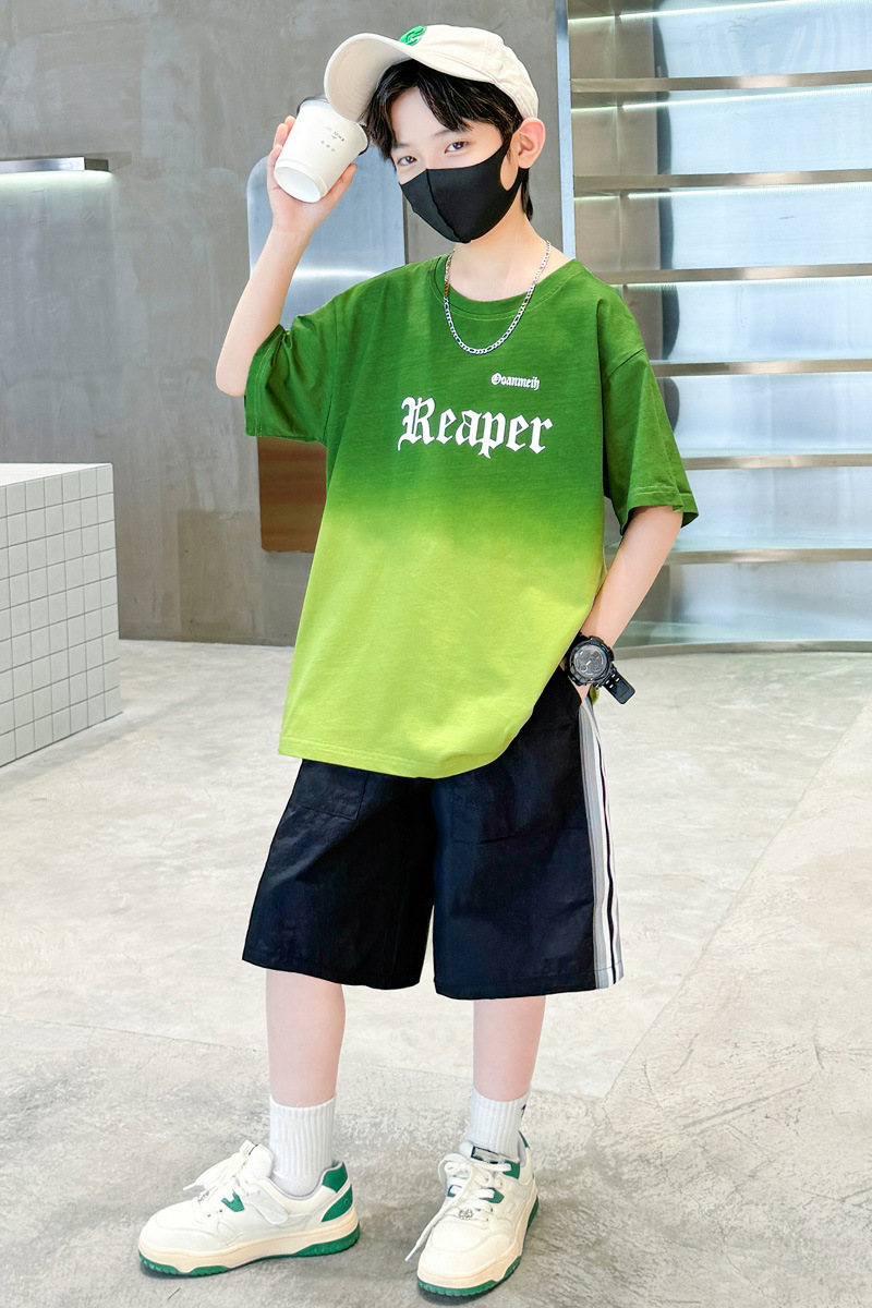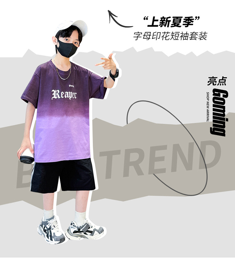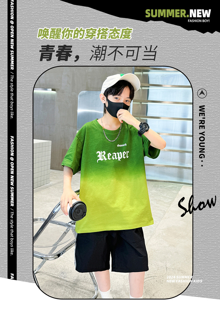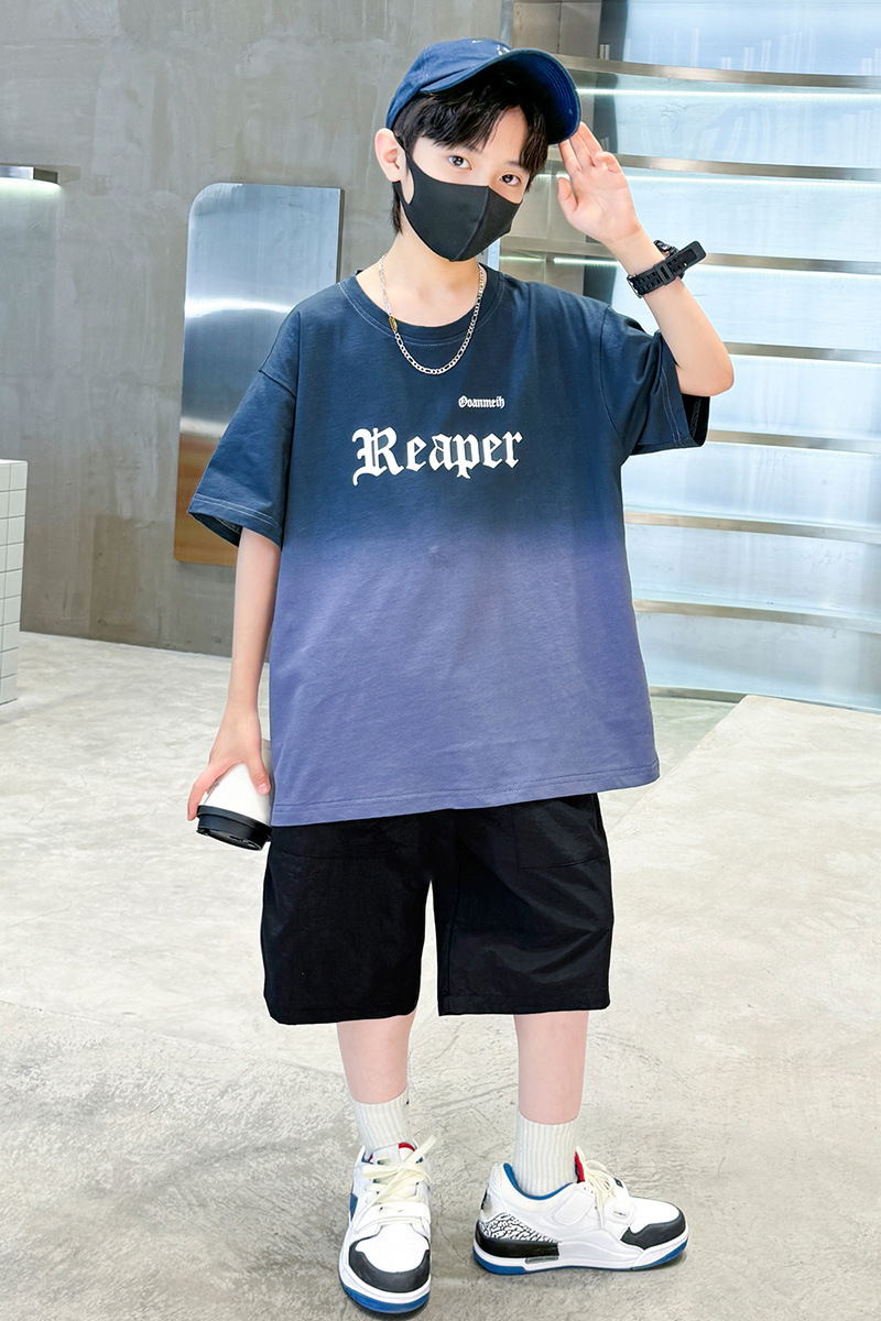 남학생의 여름 세트 2024 새로운 중대형 어린이 잘 생긴 얇은 어린이 세트 초등학생의 점진적 변화 스포츠 투피스 세트