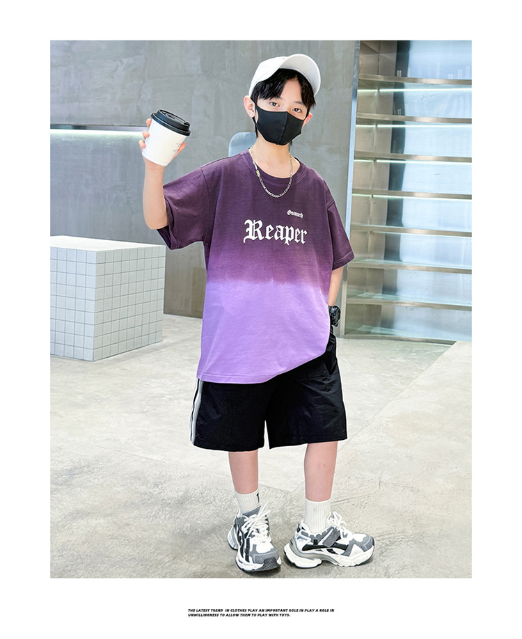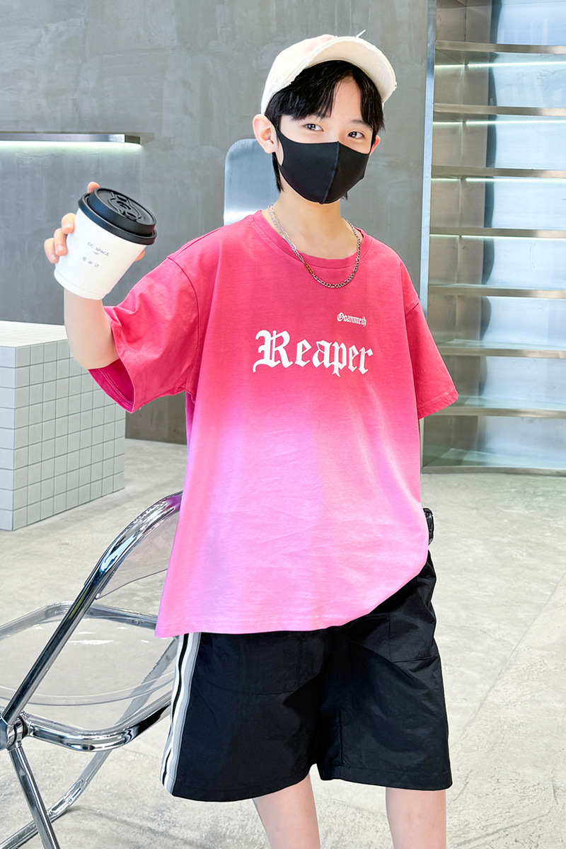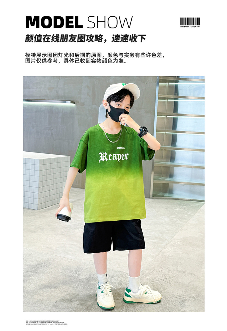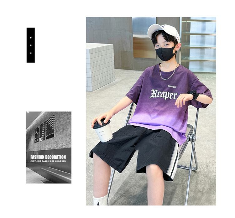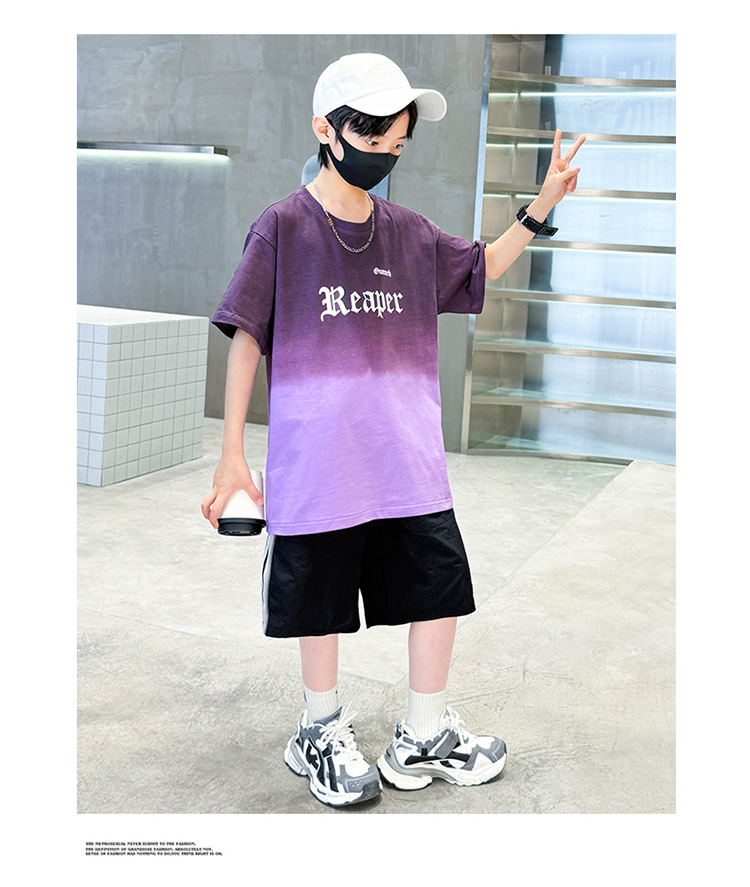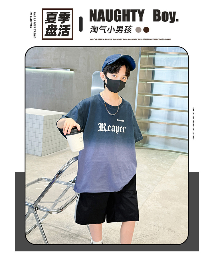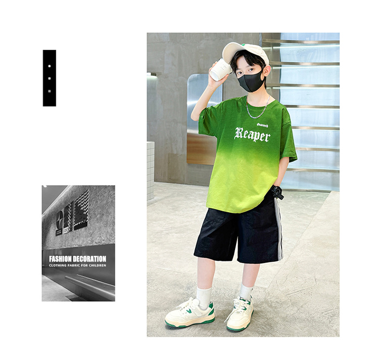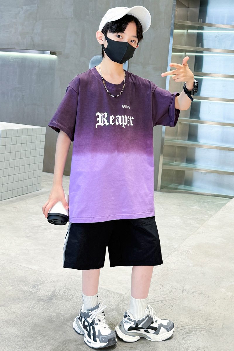 남학생의 여름 세트 2024 새로운 중대형 어린이 잘 생긴 얇은 어린이 세트 초등학생의 점진적 변화 스포츠 투피스 세트