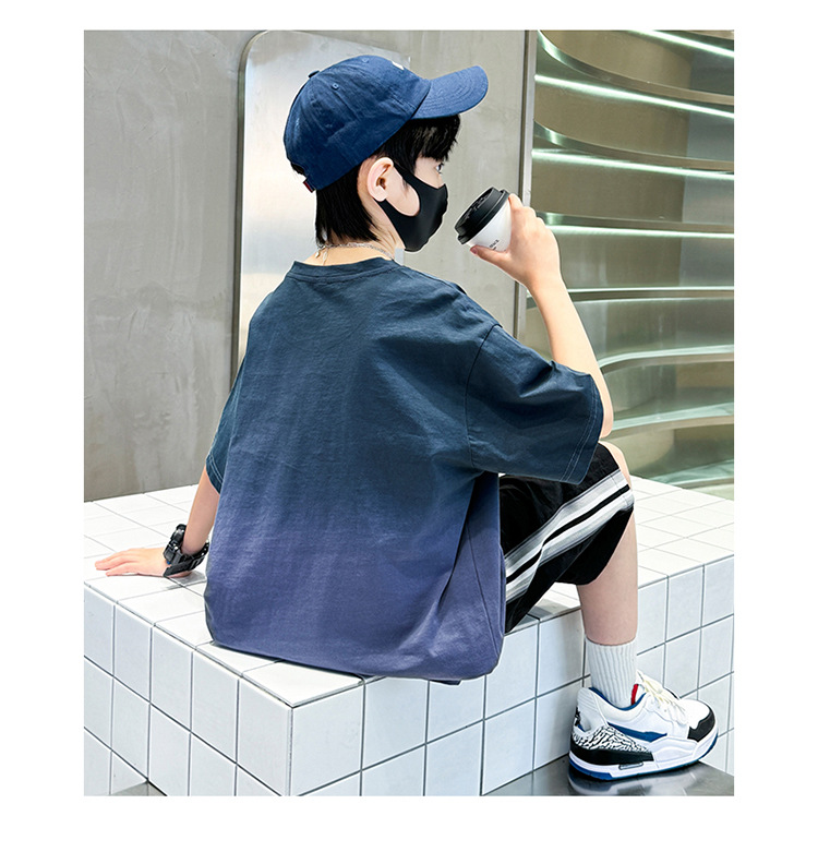 남학생의 여름 세트 2024 새로운 중대형 어린이 잘 생긴 얇은 어린이 세트 초등학생의 점진적 변화 스포츠 투피스 세트스토어 가기