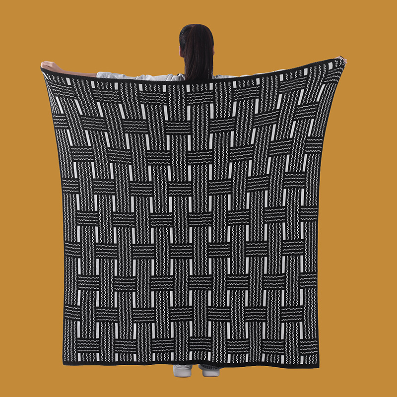 북유럽 라이트 럭셔리 소파 담요 페어 아일 레트로 흑백 짠 사무실 낮잠 담요 가을, 겨울 담요 니트 담요