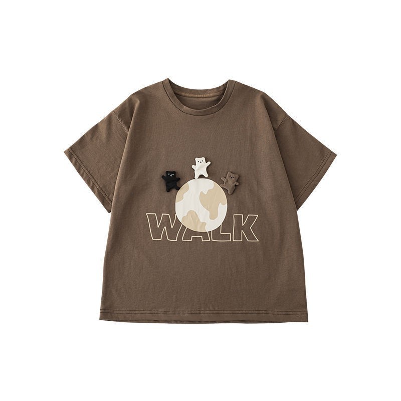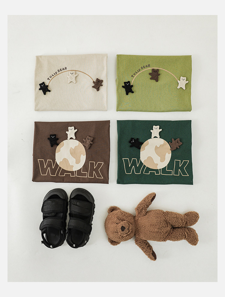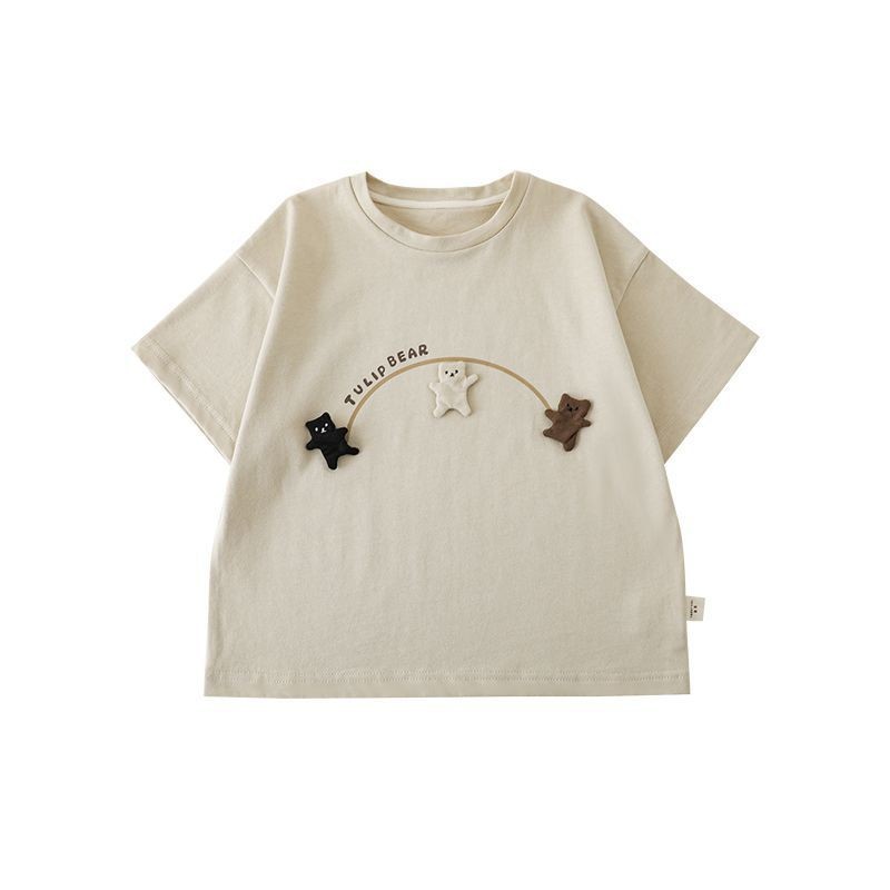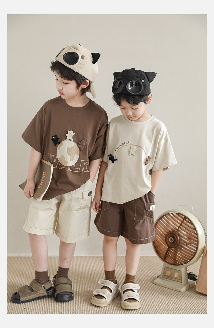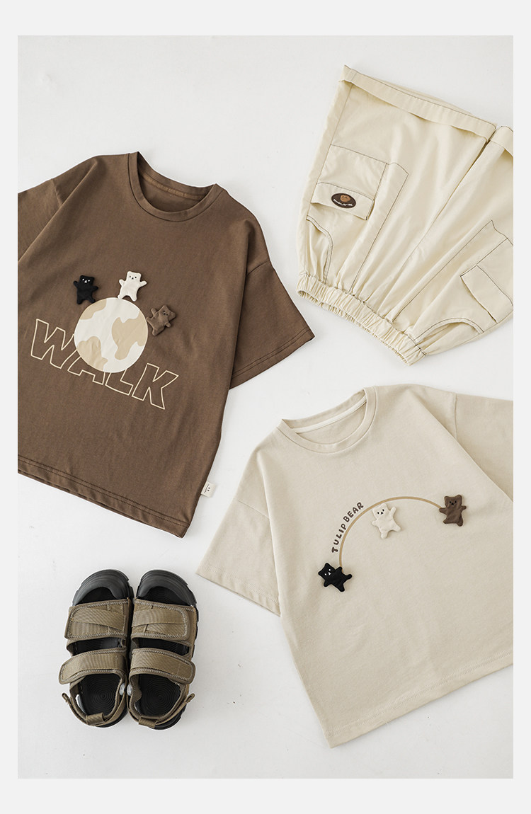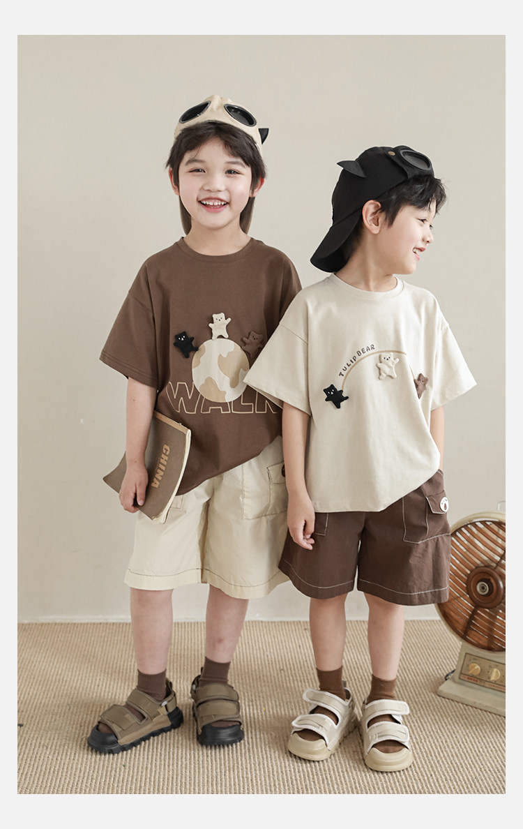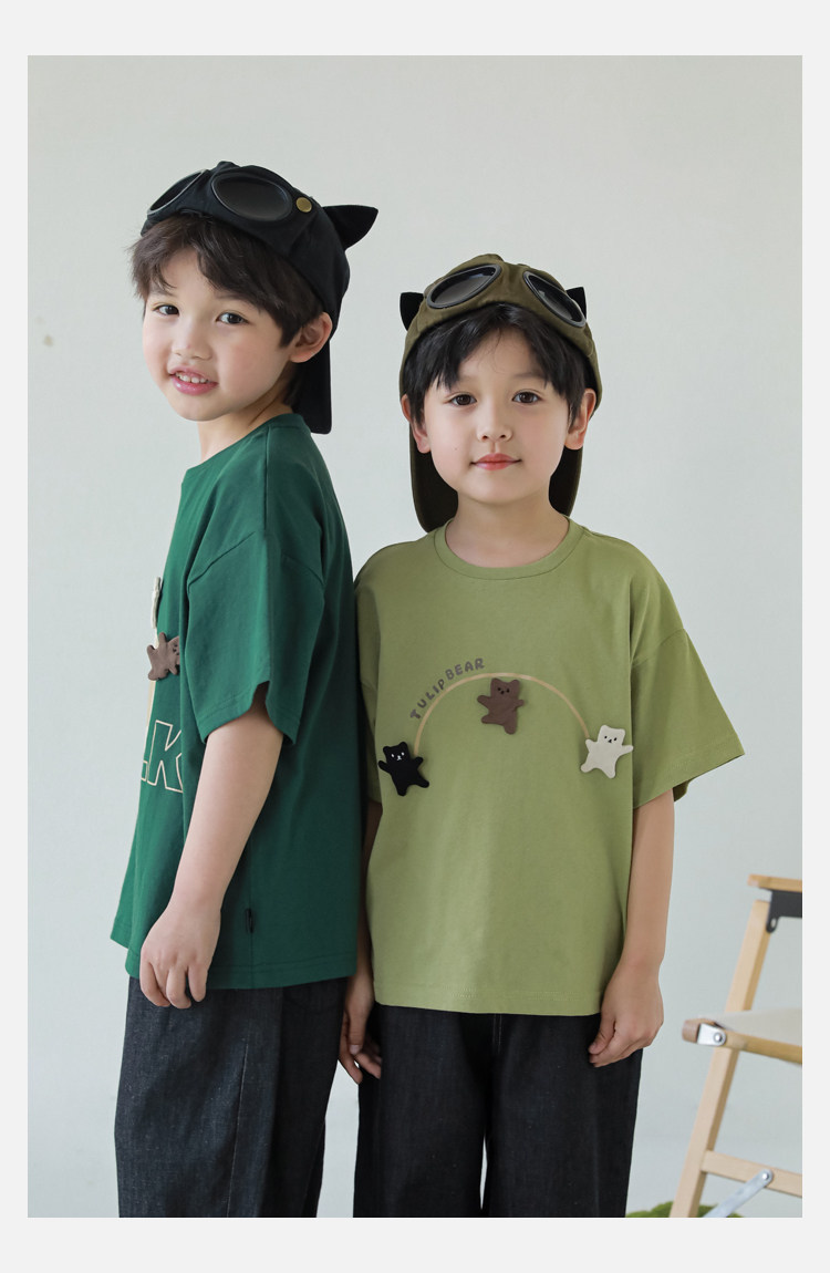 우립 해피 플래닛 베어 프린트 보이즈 루즈 캐주얼 티셔츠 여름 새로운 어린이 반팔 티셔츠스토어 가기