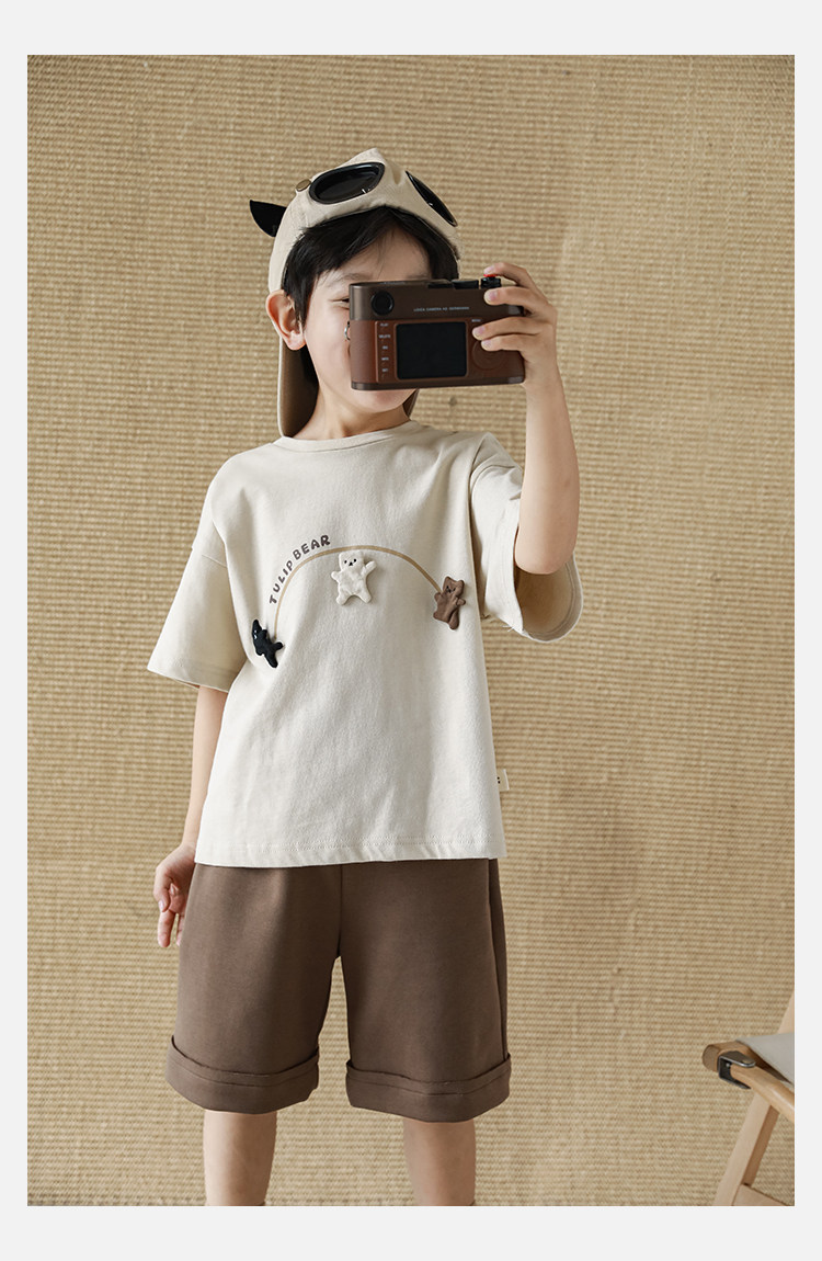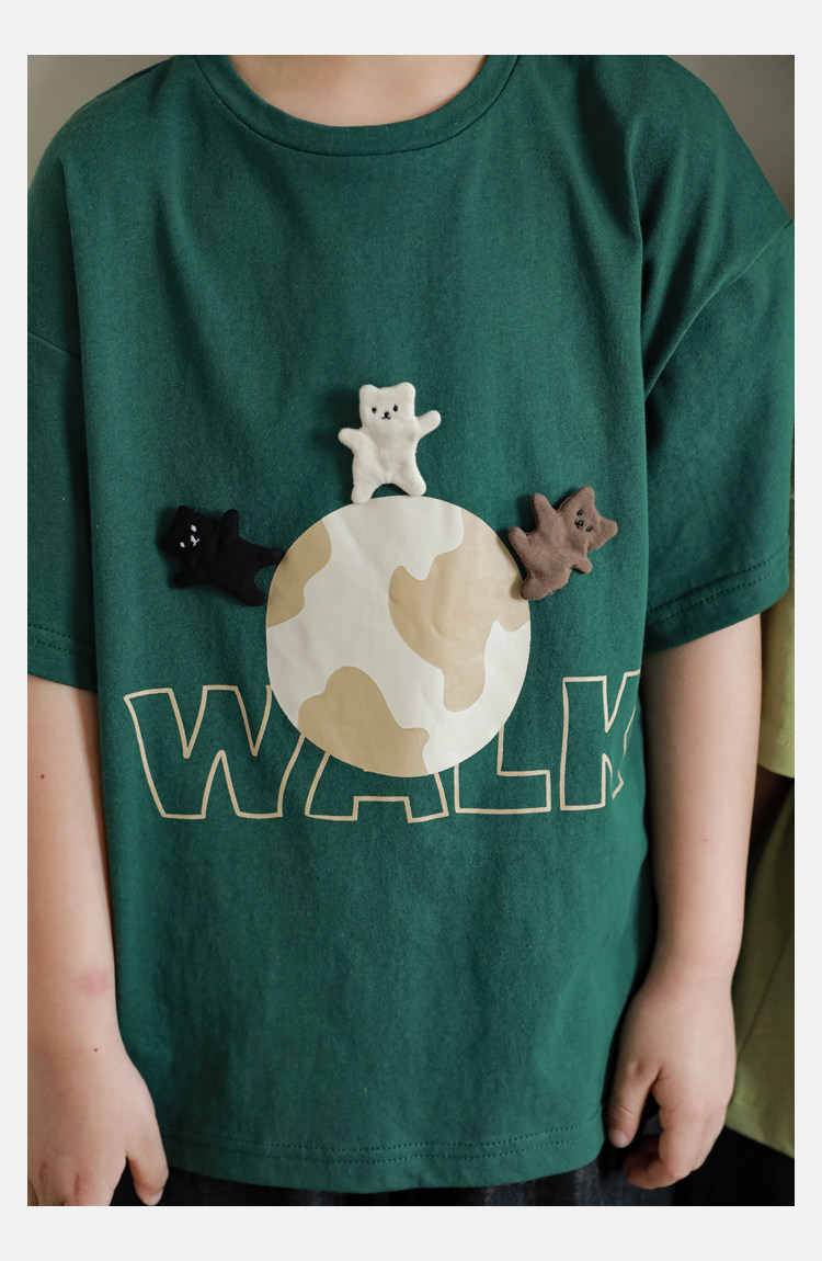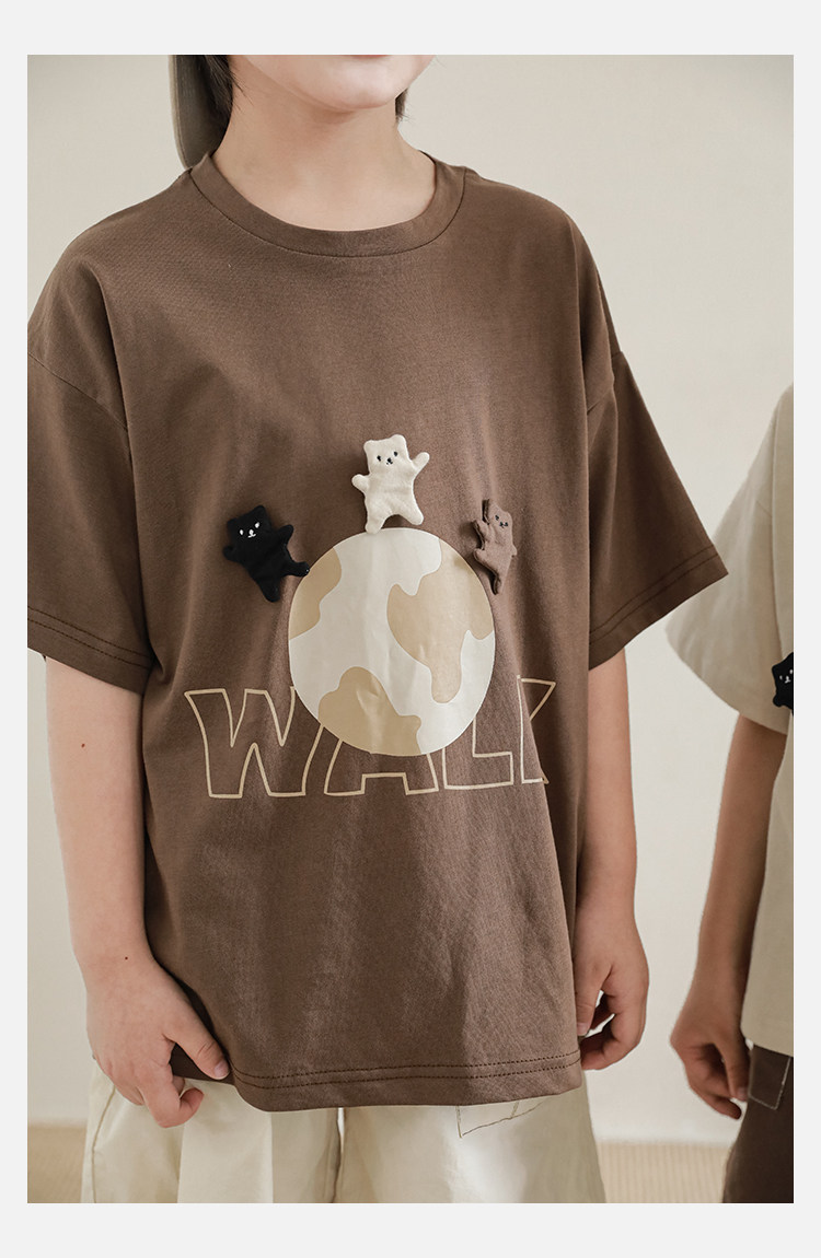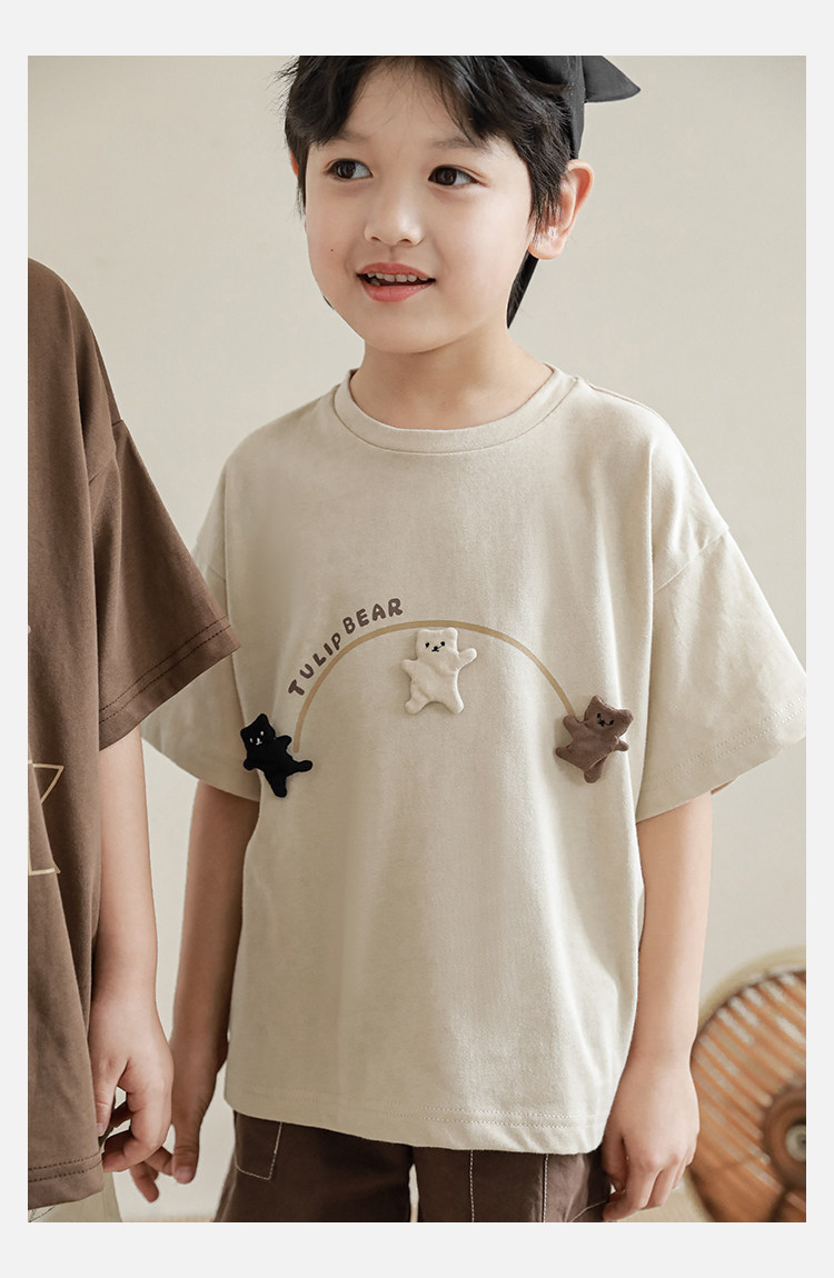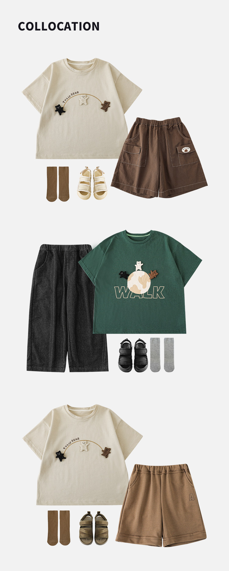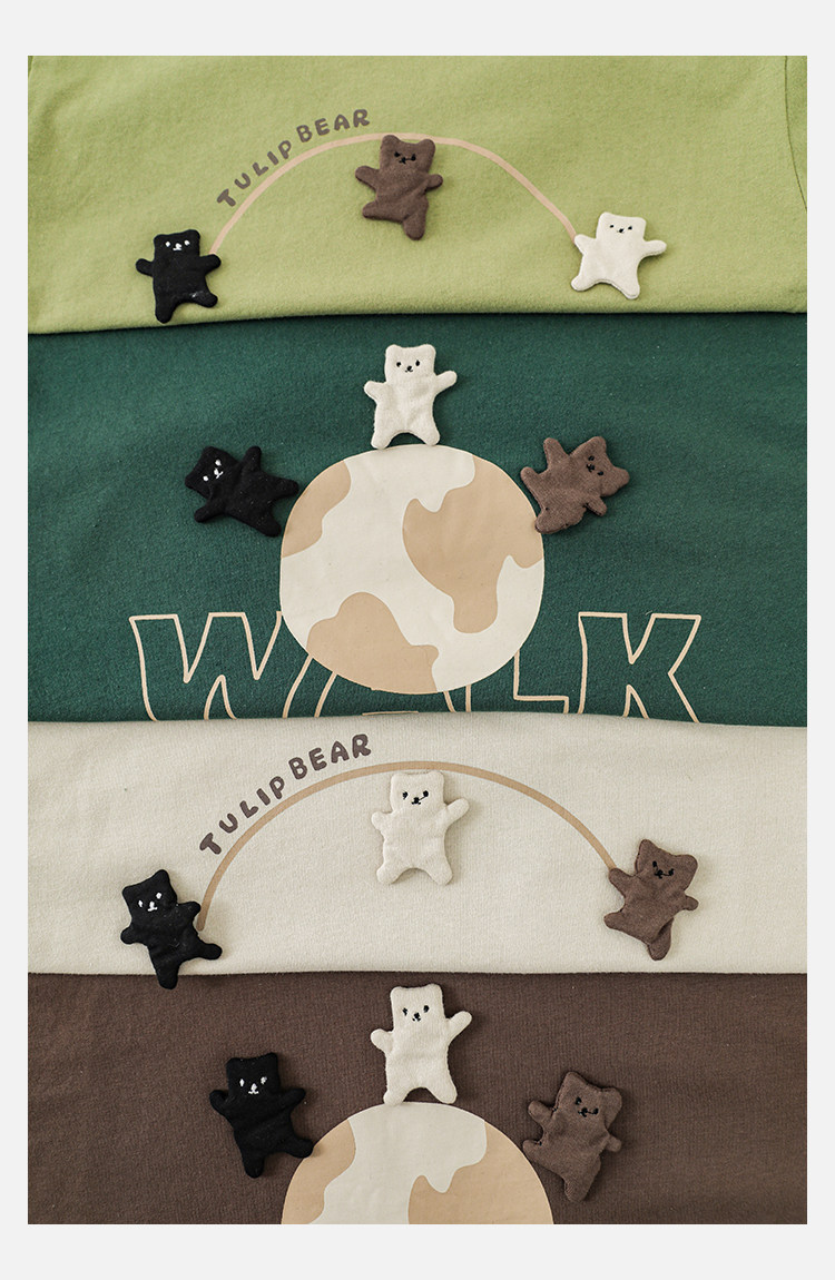 우립 해피 플래닛 베어 프린트 보이즈 루즈 캐주얼 티셔츠 여름 새로운 어린이 반팔 티셔츠스토어 가기