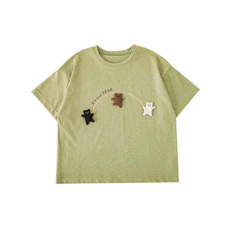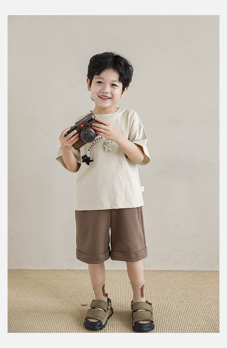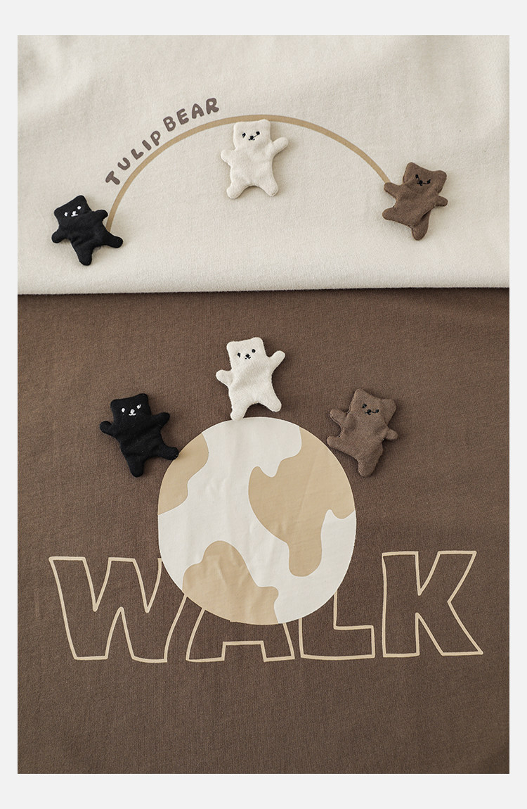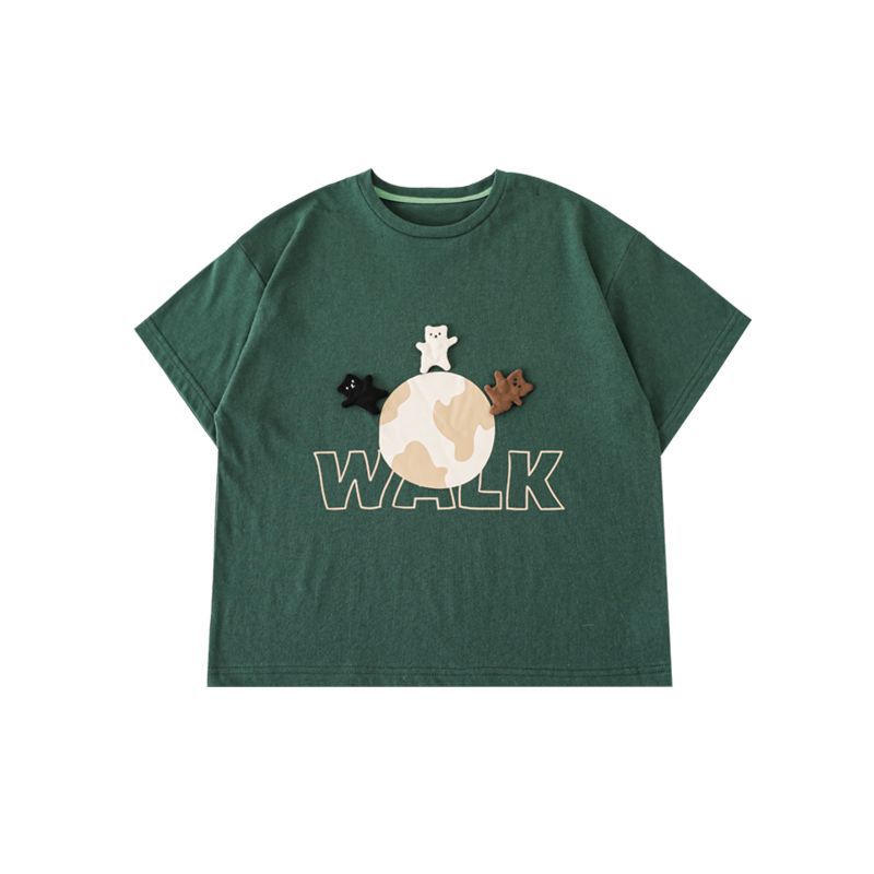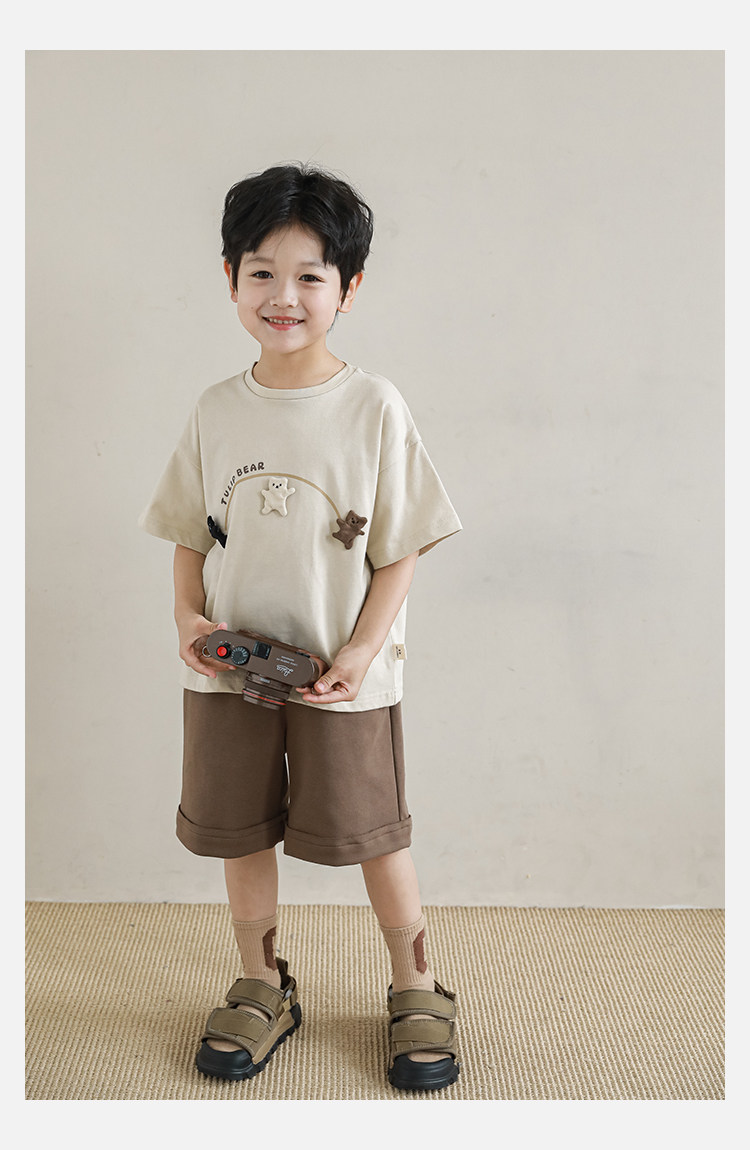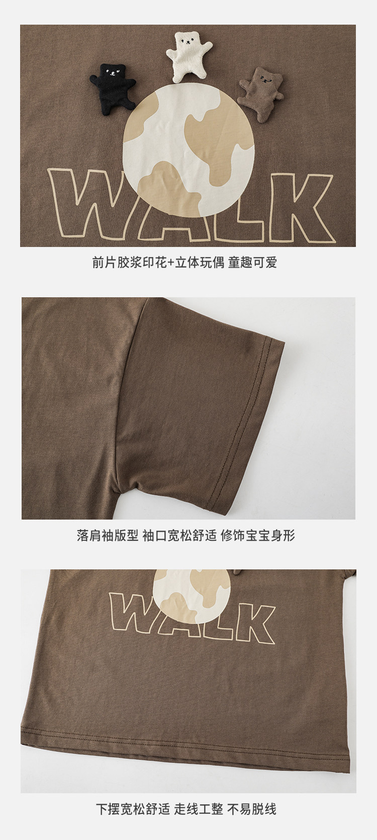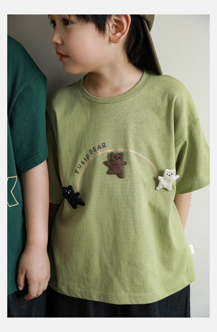 우립 해피 플래닛 베어 프린트 보이즈 루즈 캐주얼 티셔츠 여름 새로운 어린이 반팔 티셔츠스토어 가기