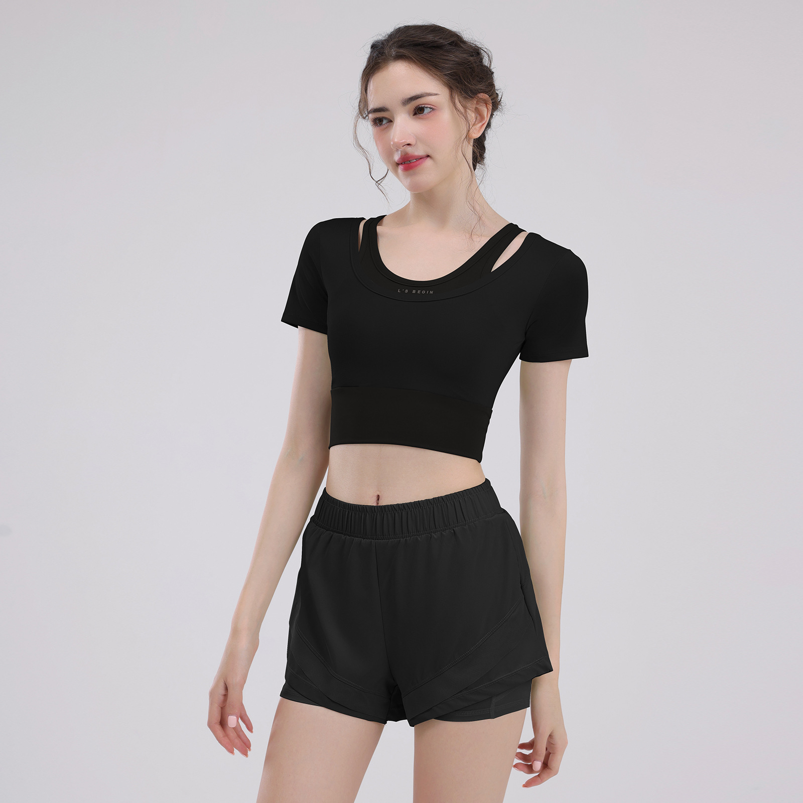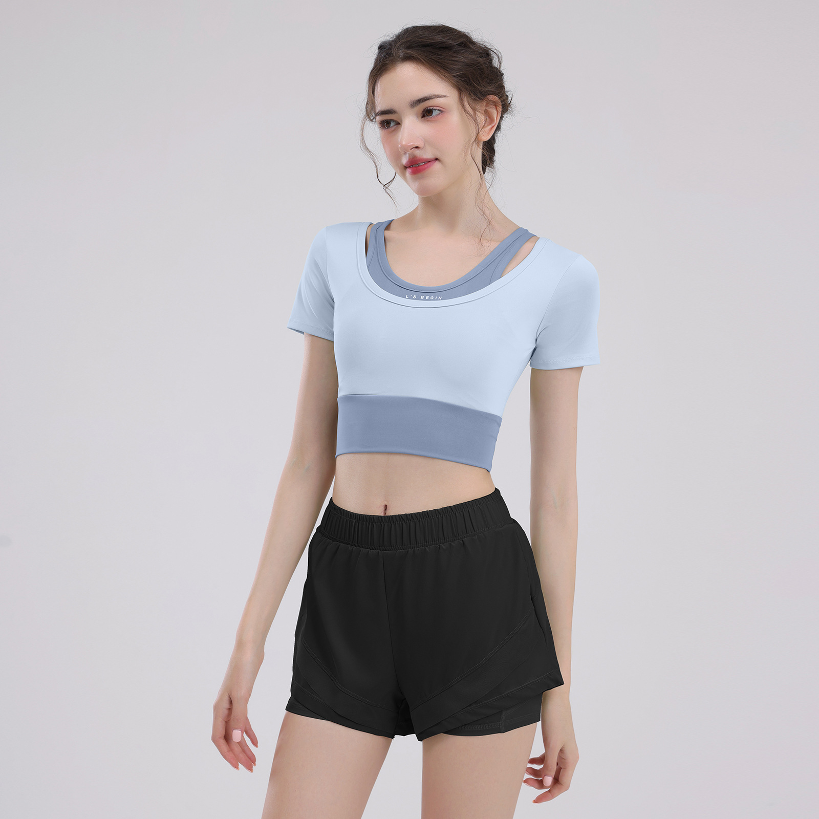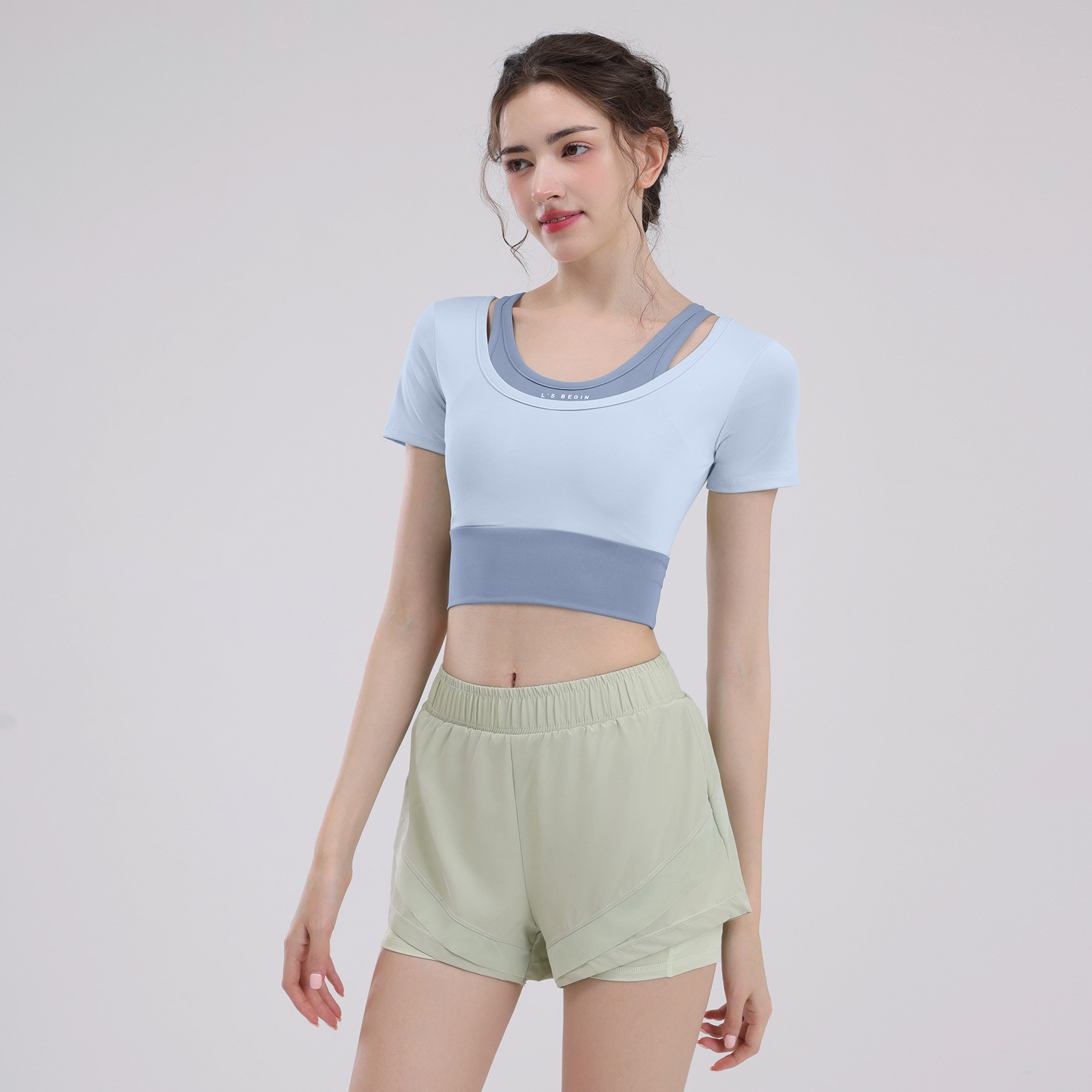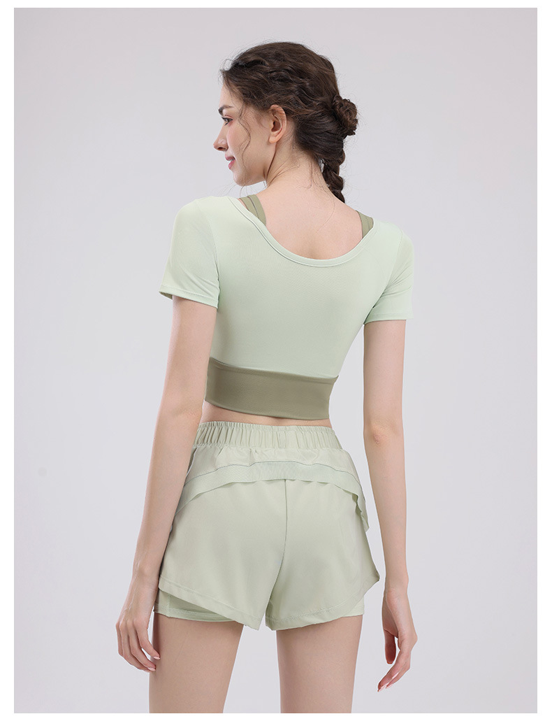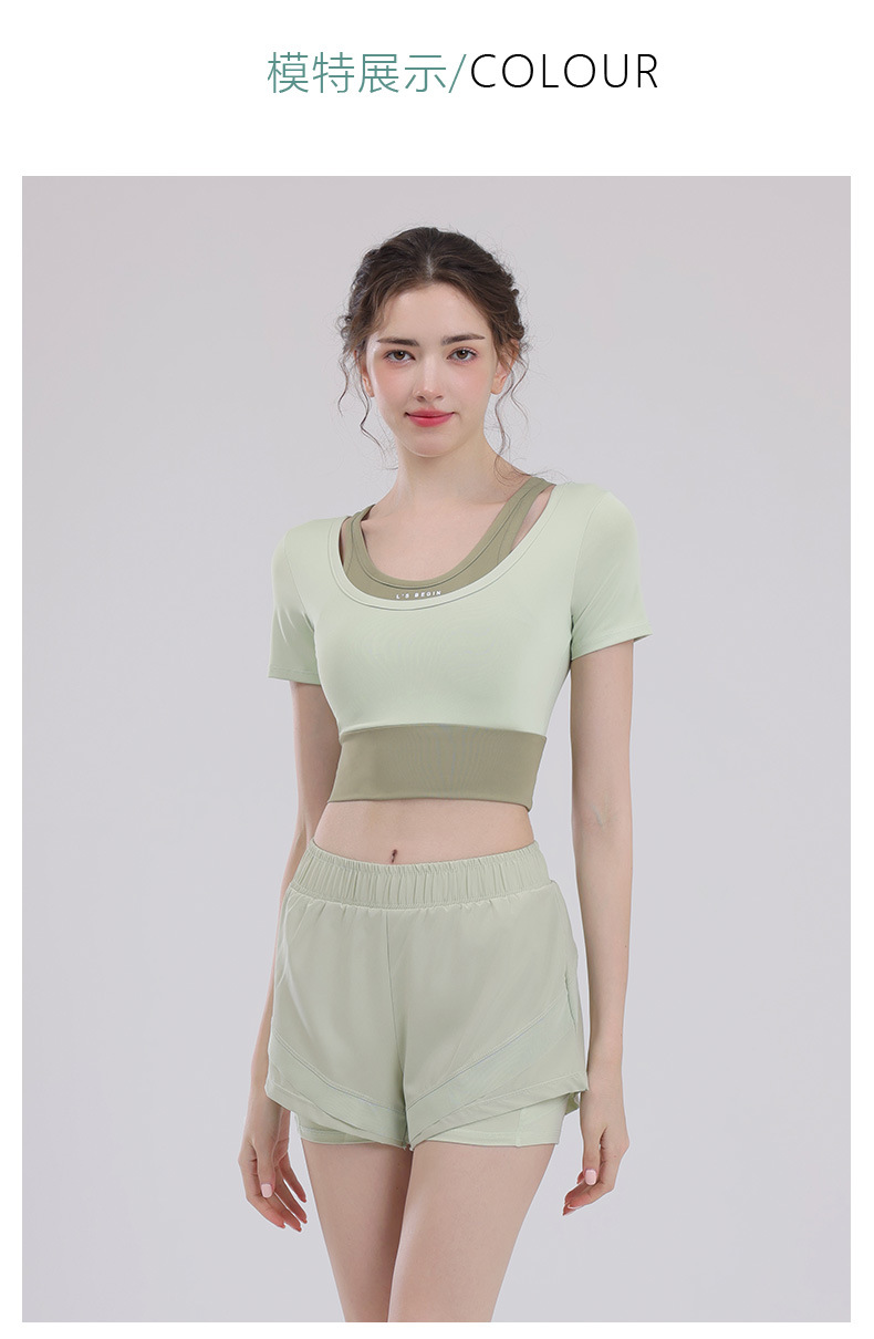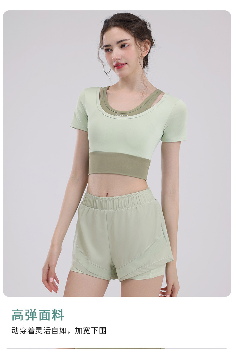 요가 의류 여성의 반팔 새로운 하이 엔드 피트니스 탑 가슴 패드 필라트와 훈련 스포츠 세트 여름스토어 가기