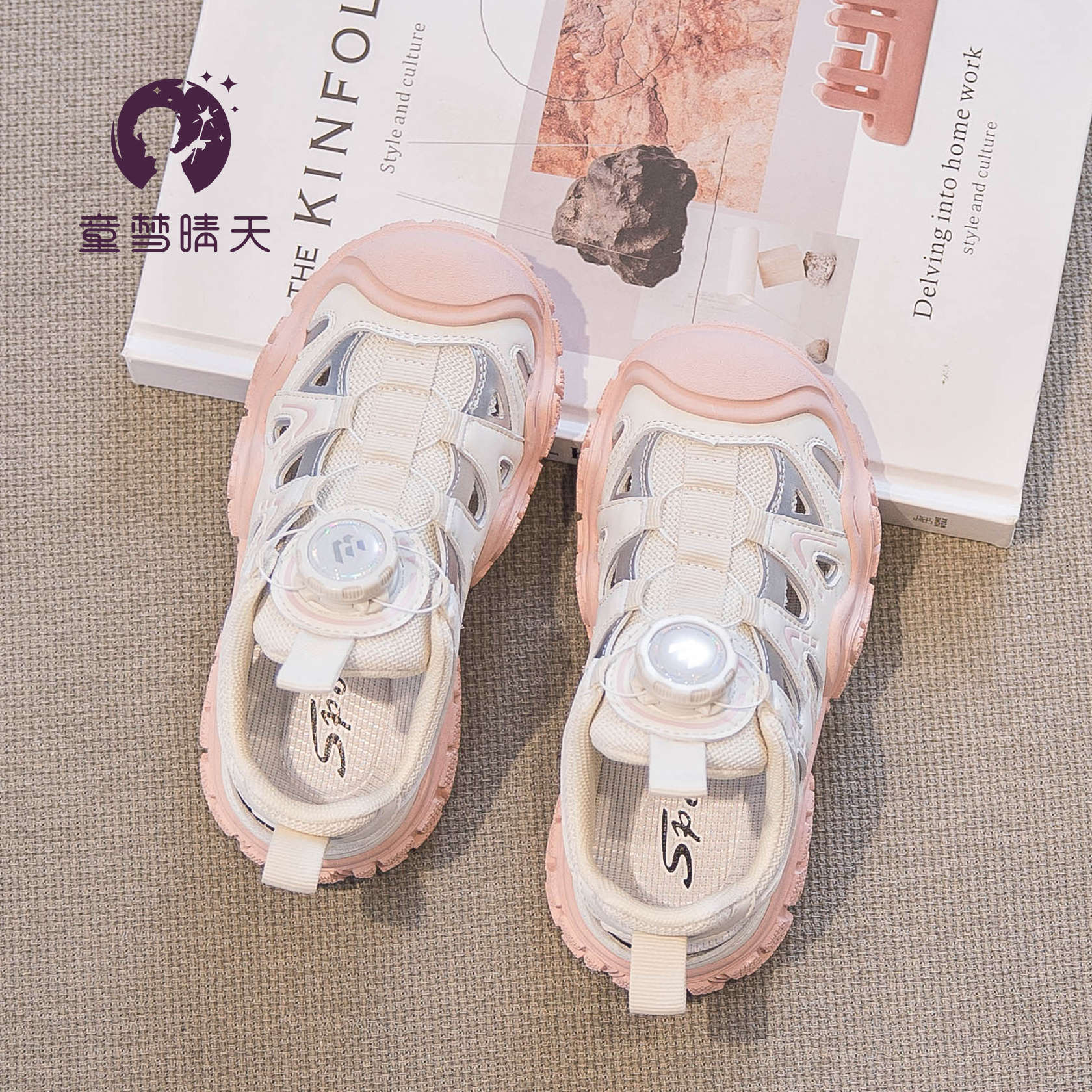 어린이 샌들 여름 신발 2024 핫 뉴 걸스 스위블 버튼 신발 여자 스포츠 샌들 소프트 단독 여름스토어 가기