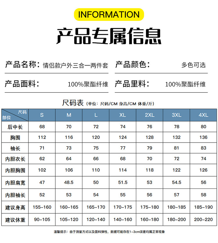 새로운 방수 야외 폭행 의류 도매 3 대 1 작업복 남성과 여성의 두꺼운 따뜻한 코트 투피스 세트스토어 가기