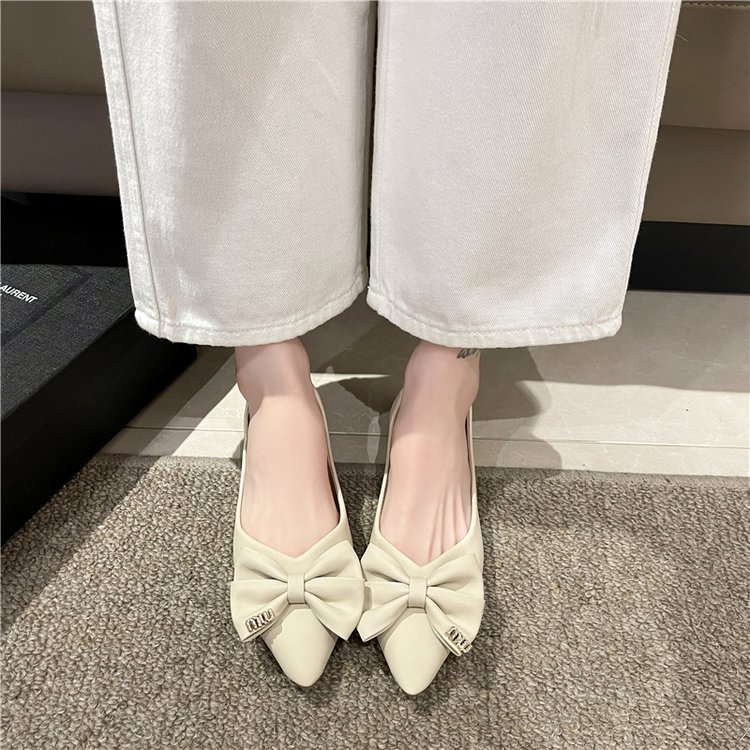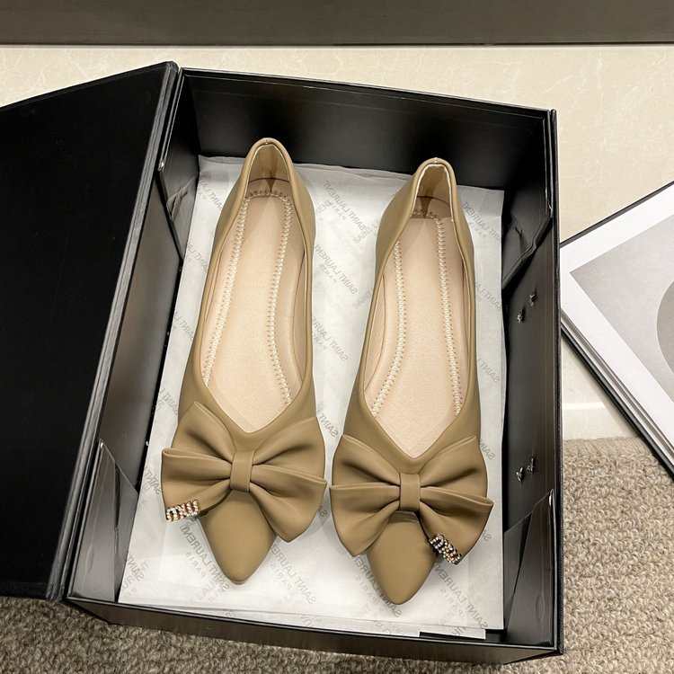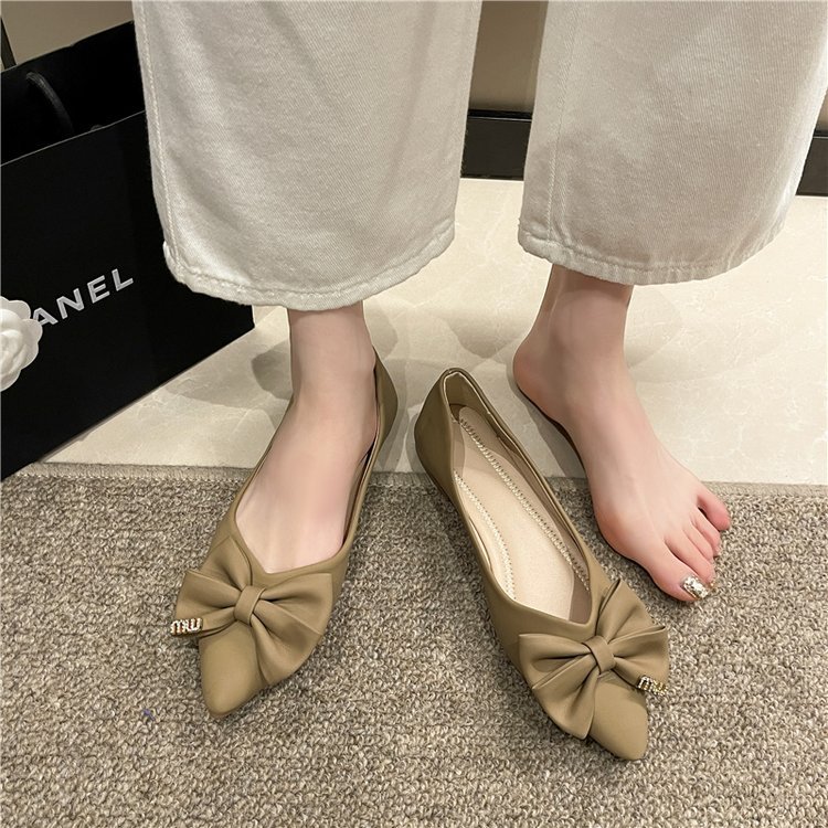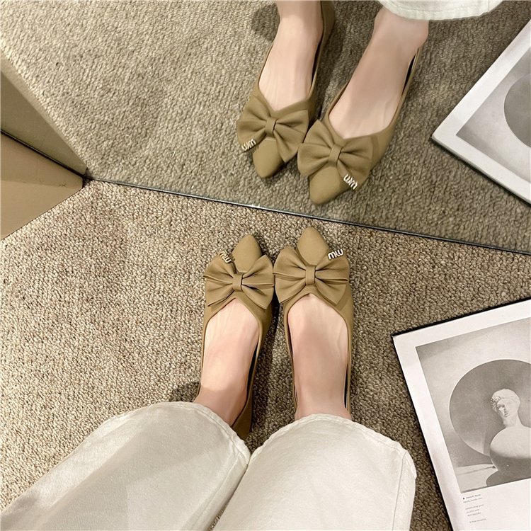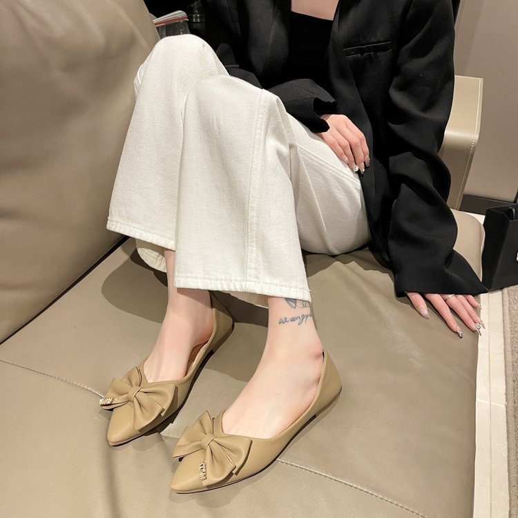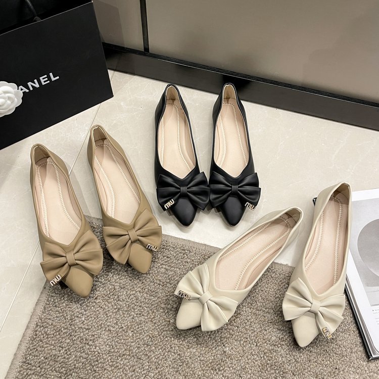 플랫 신발 여성의 2024 여름 새로운 뾰족한 활 편안한 여성 천 신발 얕은 입 신발 도매스토어 가기