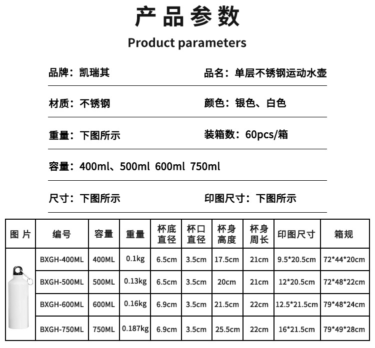 국경 간 열 전달 빈 단일 층 스테인레스 스틸 스포츠 주전자 승화 물 병 야외 휴대용 승마 컵스토어 가기