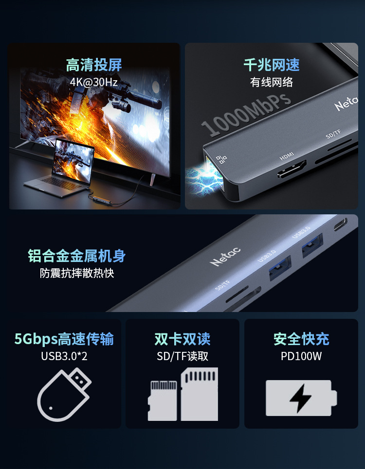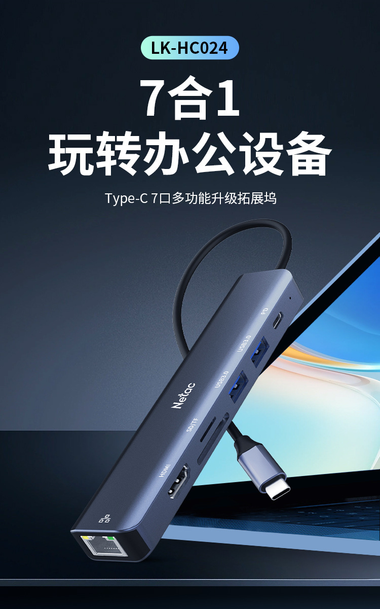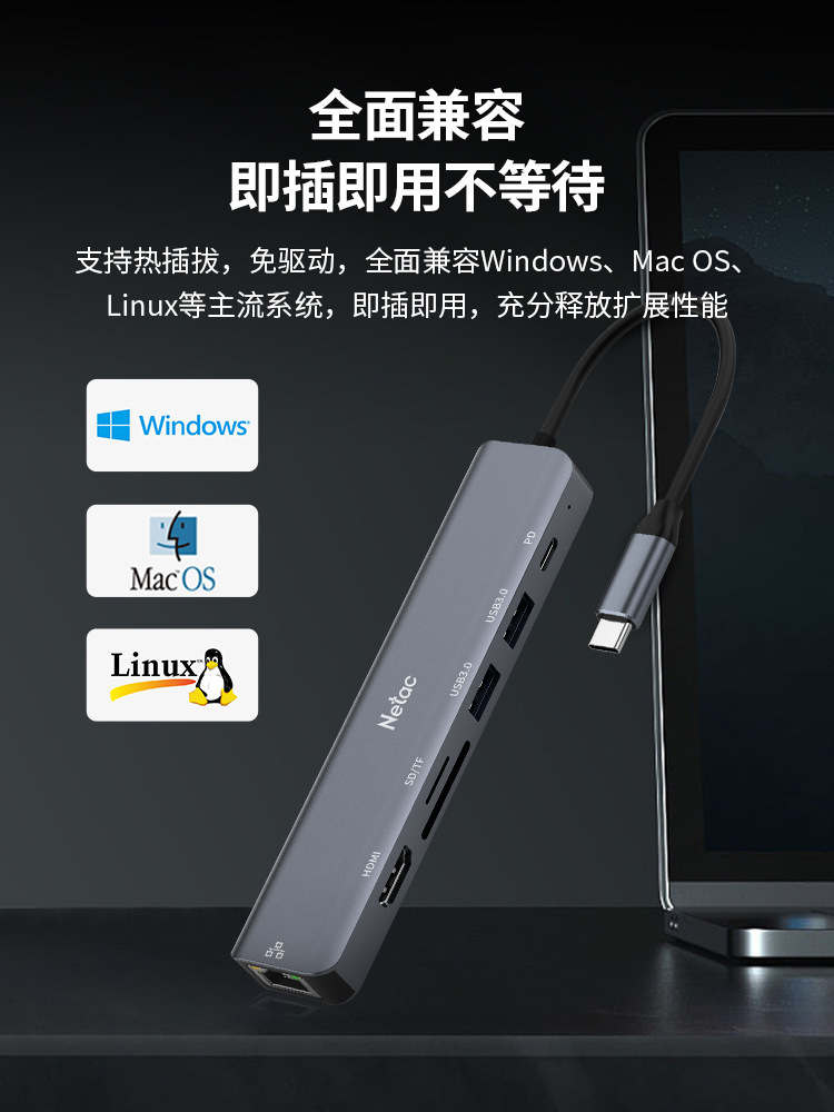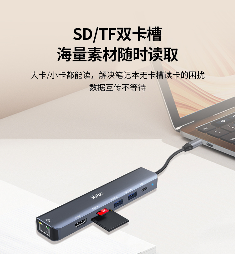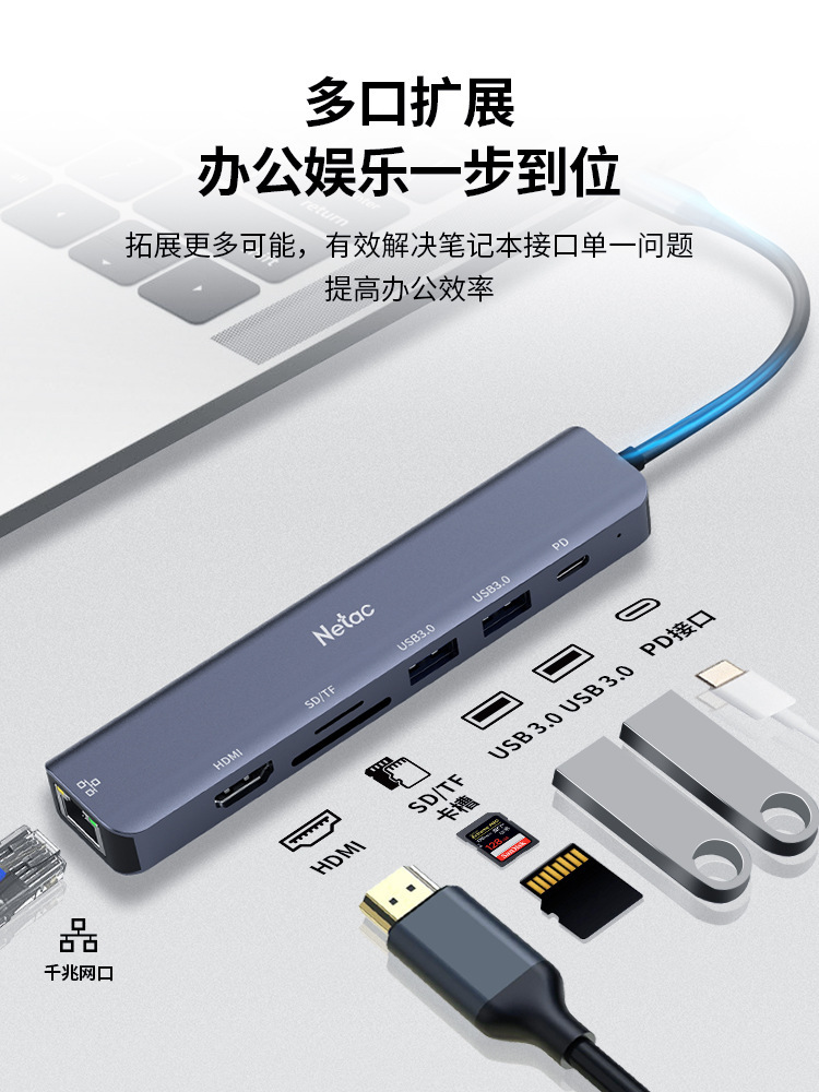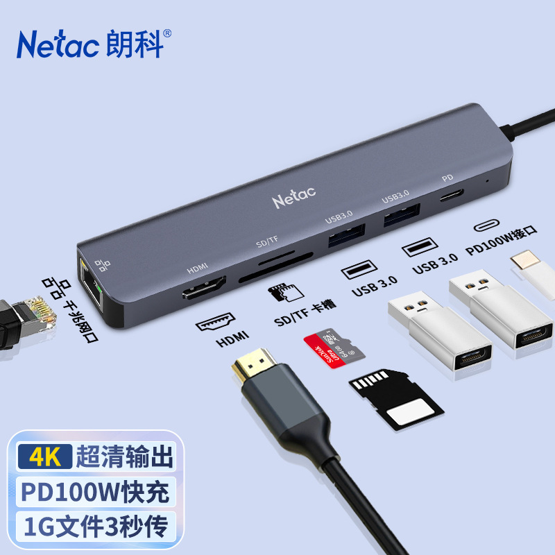 Netac 도크 USB-C 카드 리더 독 HDMI 케이블 전송 7-in -1 허브 맥 노트북 패드