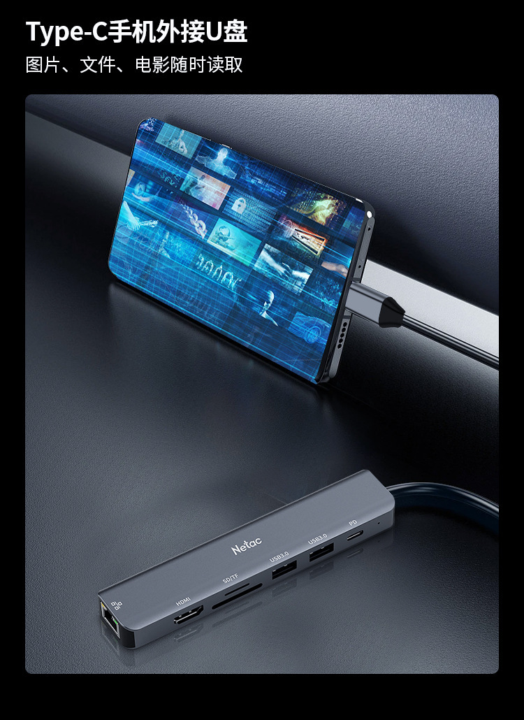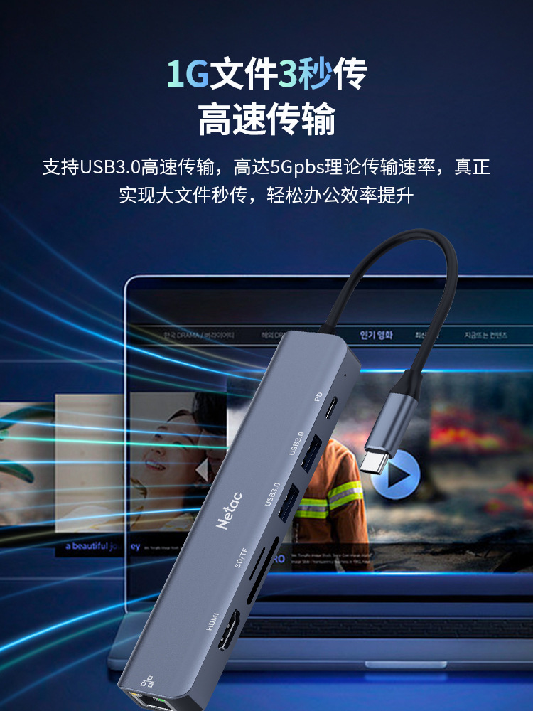 Netac 도크 USB-C 카드 리더 독 HDMI 케이블 전송 7-in -1 허브 맥 노트북 패드스토어 가기