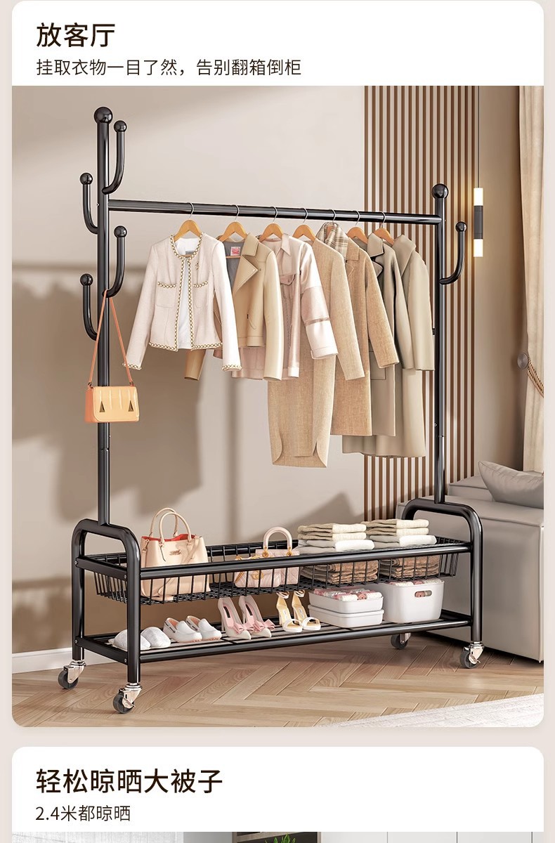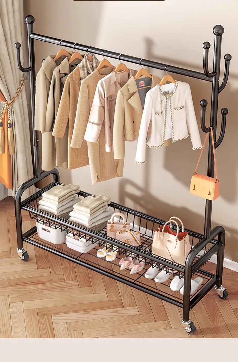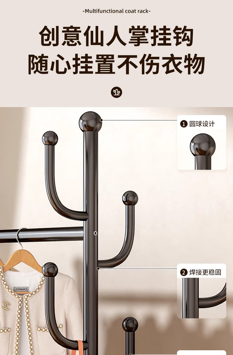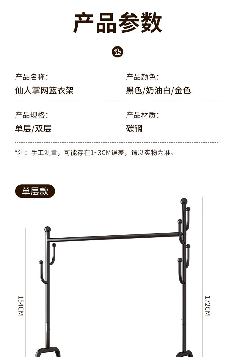 침몰 한 바구니 옷 보관 코트 랙 탄소강 높은 하중 가정용 옷걸이 선인장 바닥형 건조용 막대