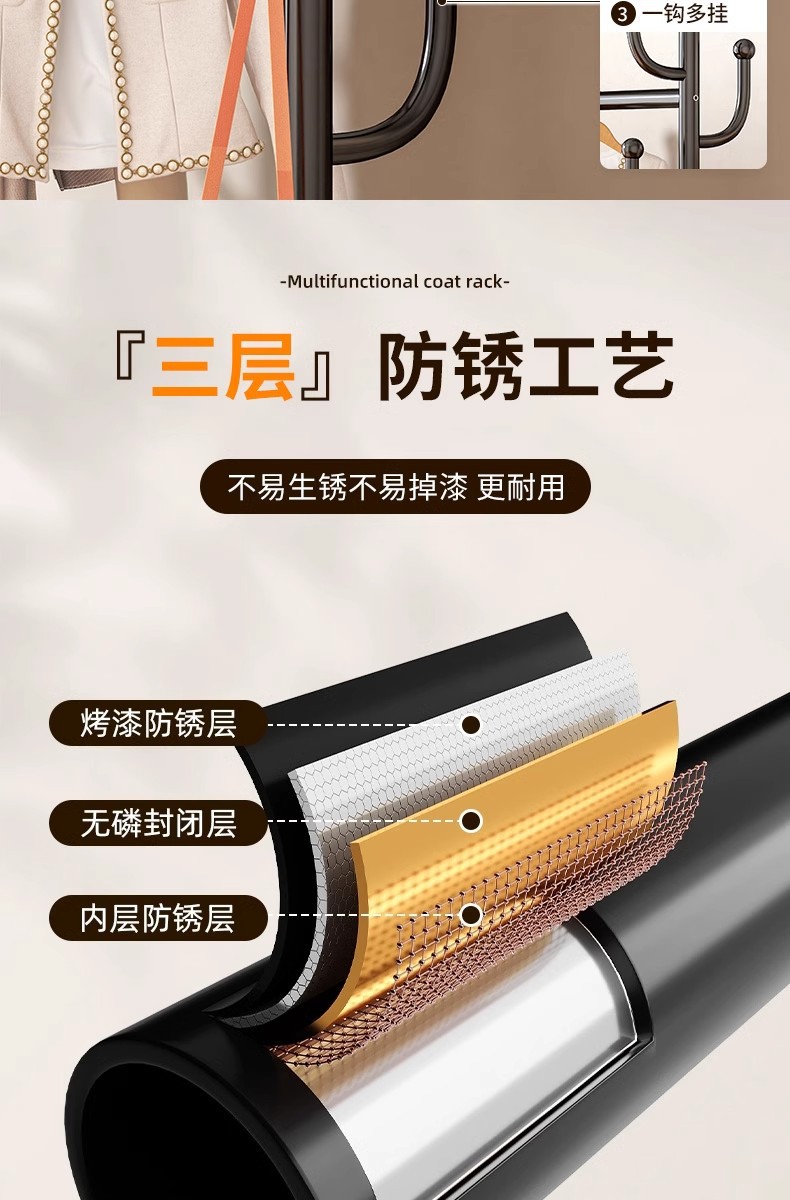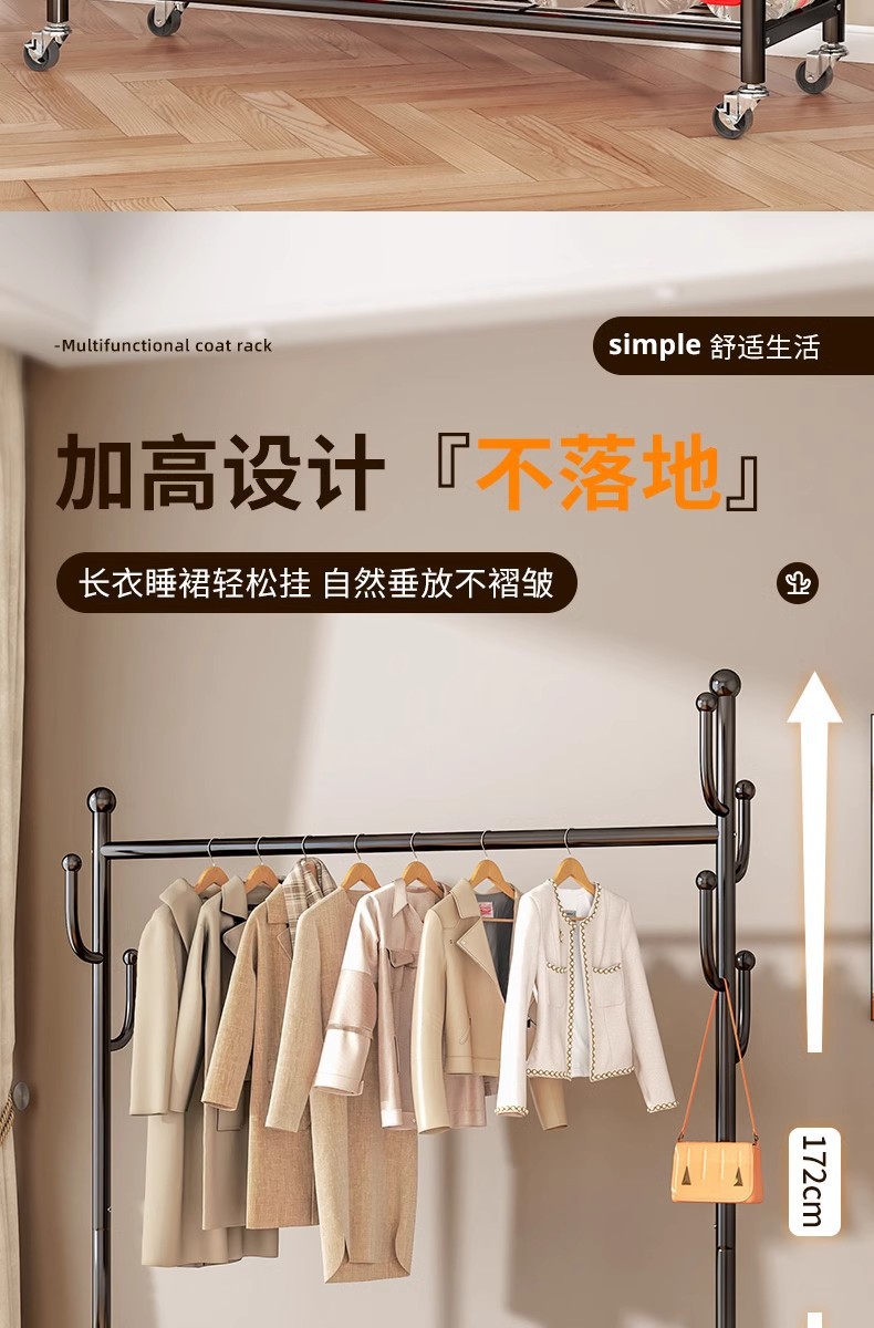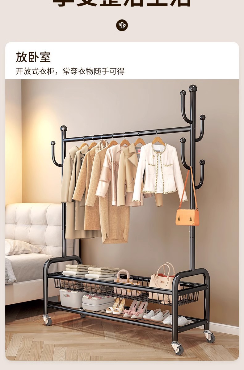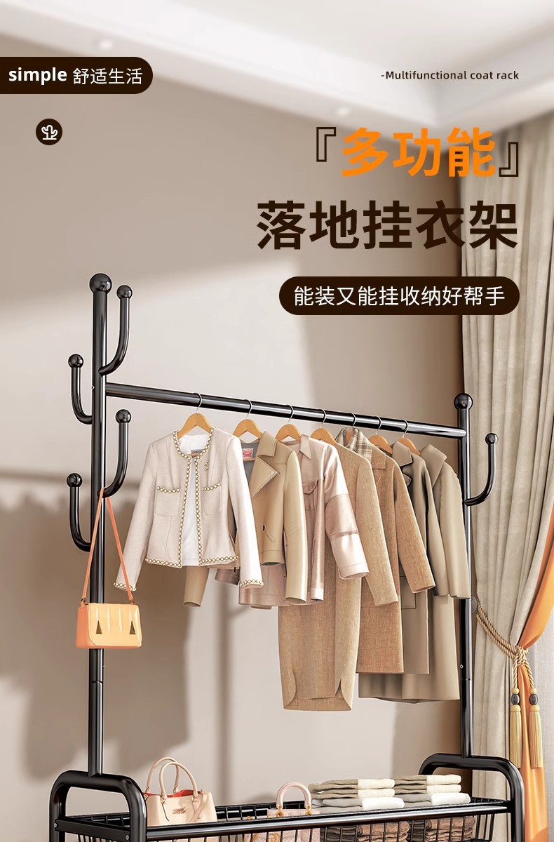 침몰 한 바구니 옷 보관 코트 랙 탄소강 높은 하중 가정용 옷걸이 선인장 바닥형 건조용 막대