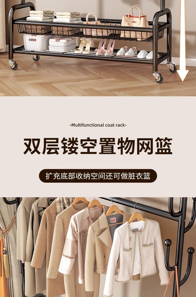 침몰 한 바구니 옷 보관 코트 랙 탄소강 높은 하중 가정용 옷걸이 선인장 바닥형 건조용 막대스토어 가기