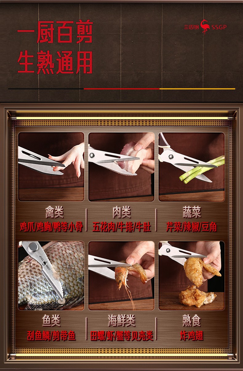 3 개의 4 개의 강철 다기능 주방 가위 가정용 생선 살해 야채 구이 고기 치킨 오리 뼈 스테인레스 스틸 가위