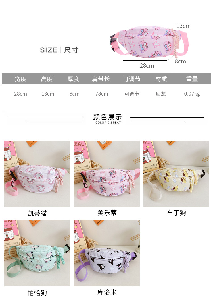 새로운 어린이 가방 만화 산리오 소년 허리 가방 귀여운 소녀 어깨 메신저 가방 아기 가슴 가방 도매