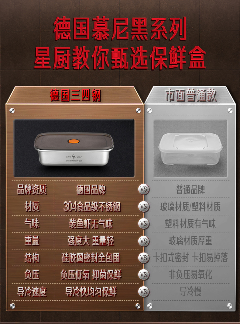 3 개 또는 4 개의 강철 신선한 보관 상자 식품 등급 304 스테인레스 스틸 과일 도시락 냉장고 특수 밀봉 보관 상자
