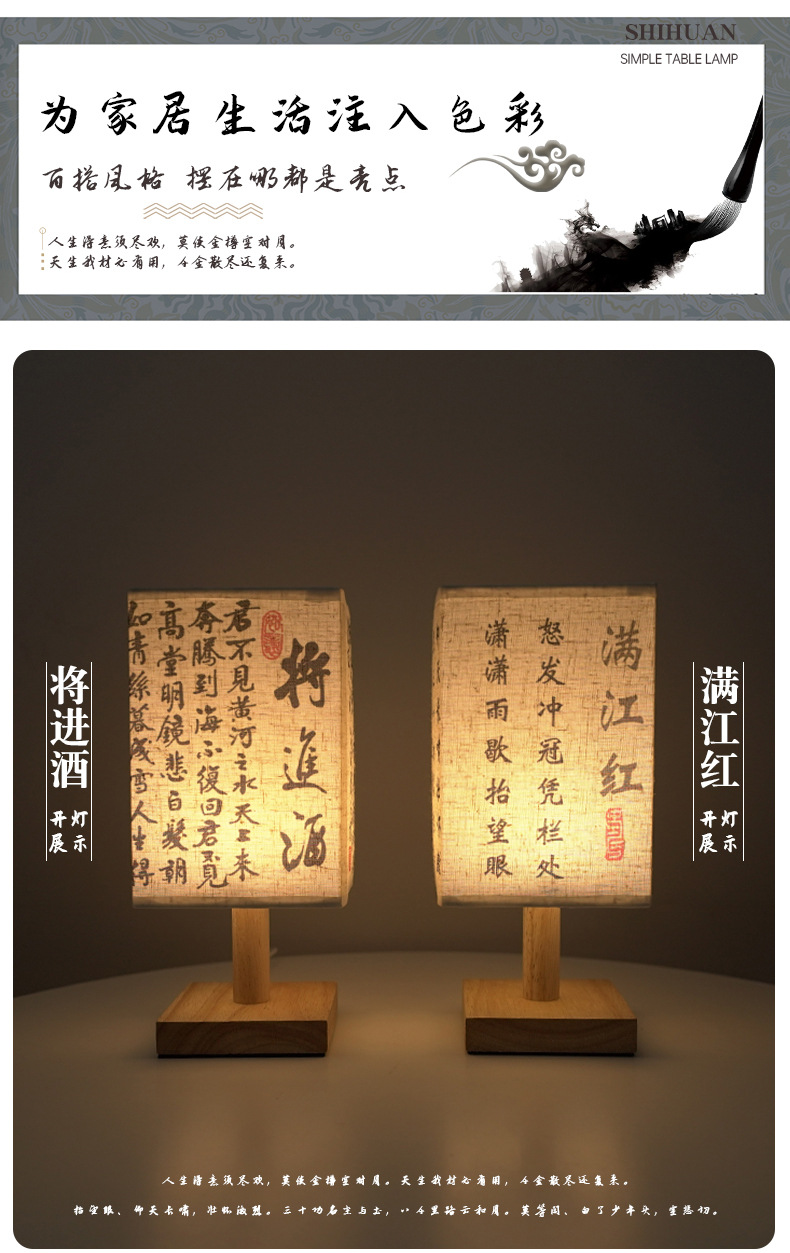 새로운 중국 스타일 복고풍 침대 옆 램프 침실 연구 B&B 선 스타일 야간 조명 찻집 고대 시 테이블 램프 서예스토어 가기
