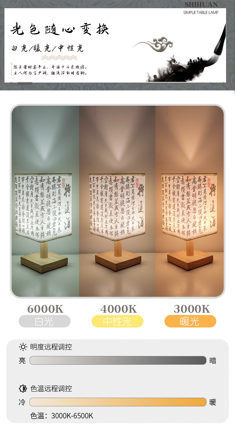 새로운 중국 스타일 복고풍 침대 옆 램프 침실 연구 B&B 선 스타일 야간 조명 찻집 고대 시 테이블 램프 서예