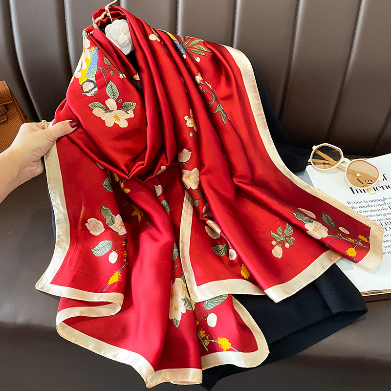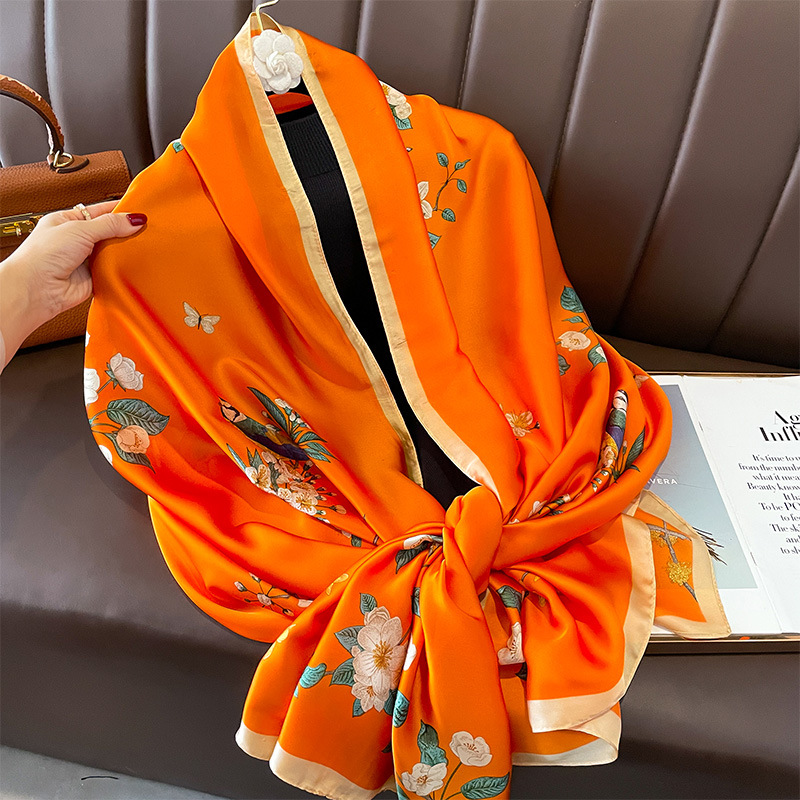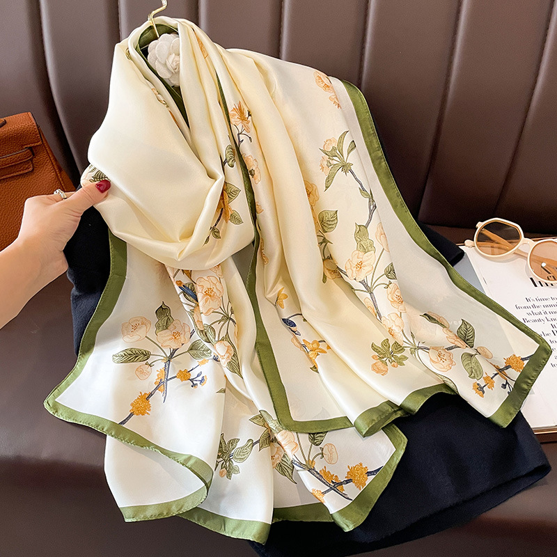 긴 실크 스카프 모방 실크 가을과 겨울 여성의 새로운 유행 서양식 하이 엔드 올 매치 봄과 여름 듀얼 사용 선 스크린 목도리 여성스토어 가기