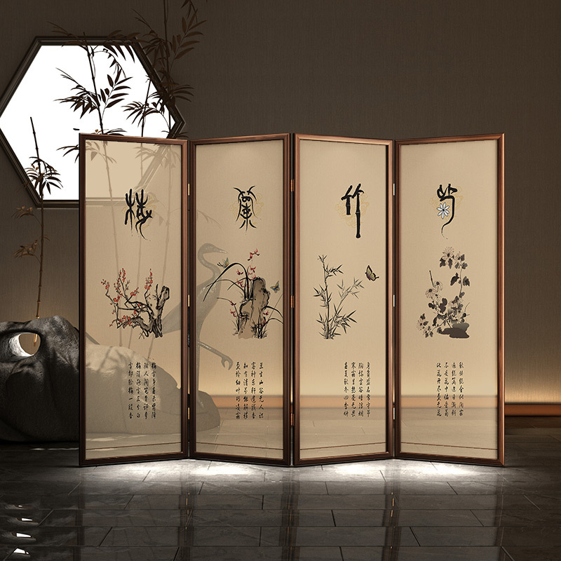 새로운 중국 스타일 솔리드 우드 스크린 파티션 사무실 거실 입구 복도 차단 접이식 모바일 접이식 스크린 매화 대나무 국화